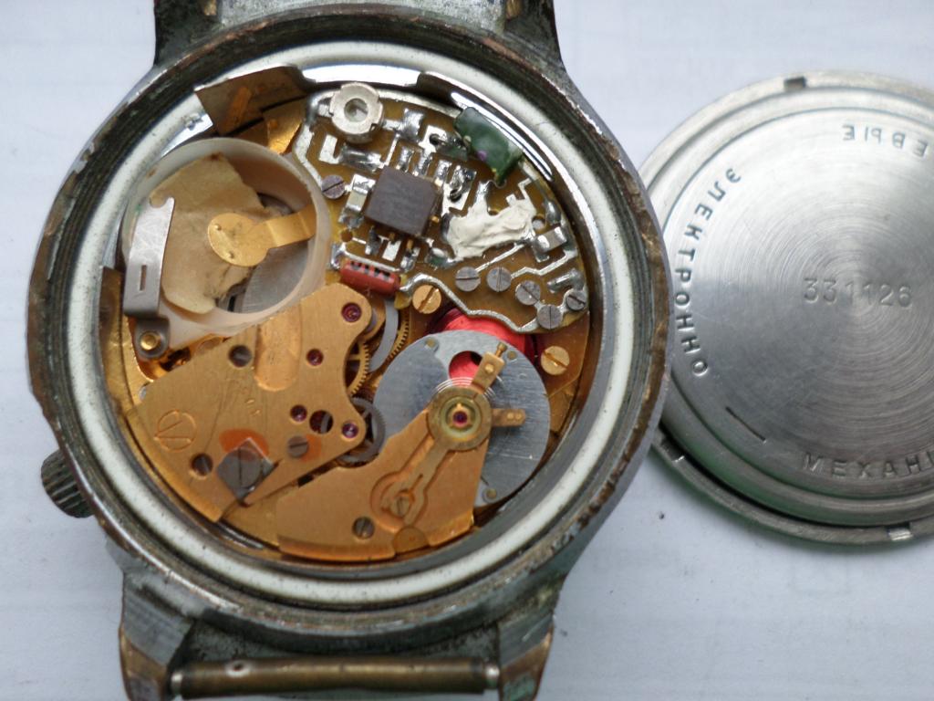 Вчера, как и писал ранее, забрал очередной Лучик 3055 с белым цифером. Состояние на фото продавца ниже. Поковырял эти часы какой-то умелец и оборвал катушку (видимо, очень неаккуратно ставил на место и повредил обмотку о магниты баланса). Но, к моему великому счастью, мне удалось её восстановить. Процесс был, нужно сказать, весьма весёлым. Но он уже позади.:) Вчера же полностью разобрал мех. Дальше последует стандартная процедура мойки, чистки, смазки, сборки меха и ремонт электронного блока. Ну, и ещё нужно будет подумать, как освежить внешний вид. Фото того, что получится в итоге, выложу по окончании всех работ.;)
