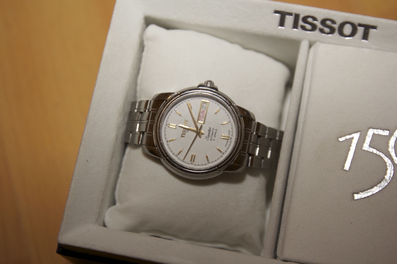 Мои Tissot. Куплены в 2006. Никаких нареканий, одни положительные эмоции. Ремешок сначала был коричневый как на четвертой фотке. Но на черном по-моему тоже не плохо. |
