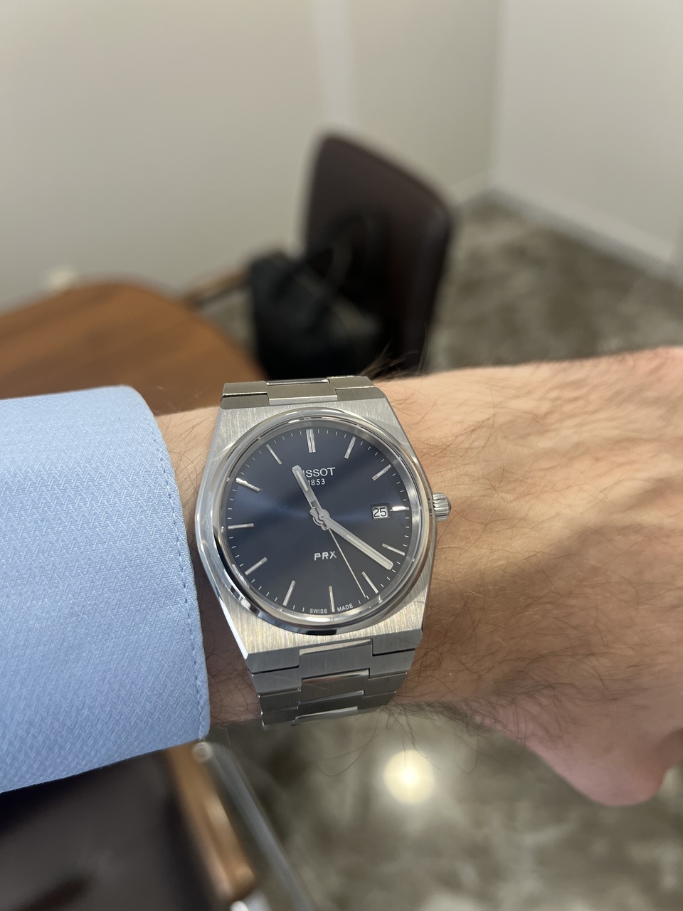 изначально хотелось salmon (по картинкам), по факту же цвет оказался очень бедным живьём. Хотя конечно черные индексы и стрелки подкупали. В итоге синее на серебристом, которое большую часть времени тоже выглядит как чёрное:cool: из минусов наверно, штатный ремень из непонятного материала ощущается как клеёнка какая то, штатный браслет излишне массивен, и ghost date.... честные, без десятых 39мм по корпусу, L2L 46,4, запястье 16,5 http://forum.watch.ru/attachment.php...1&d=1740220795 http://forum.watch.ru/attachment.php...1&d=1740220795 |