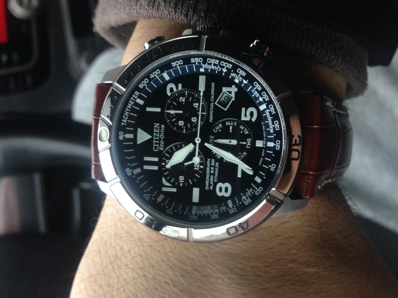 Citizen CC3020-57L, посадил на карбоновый ремешок.