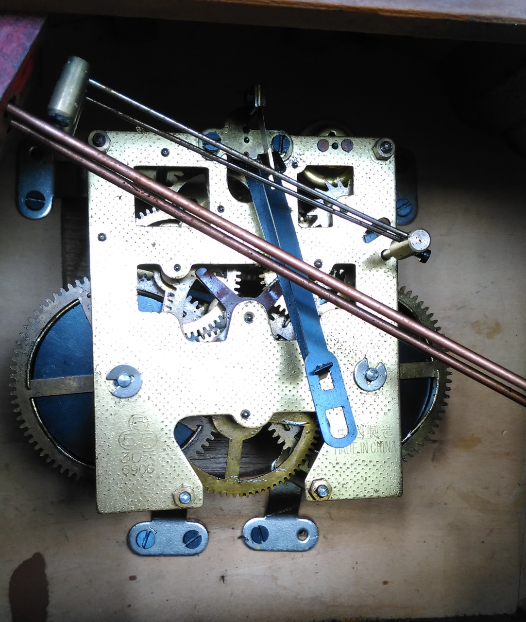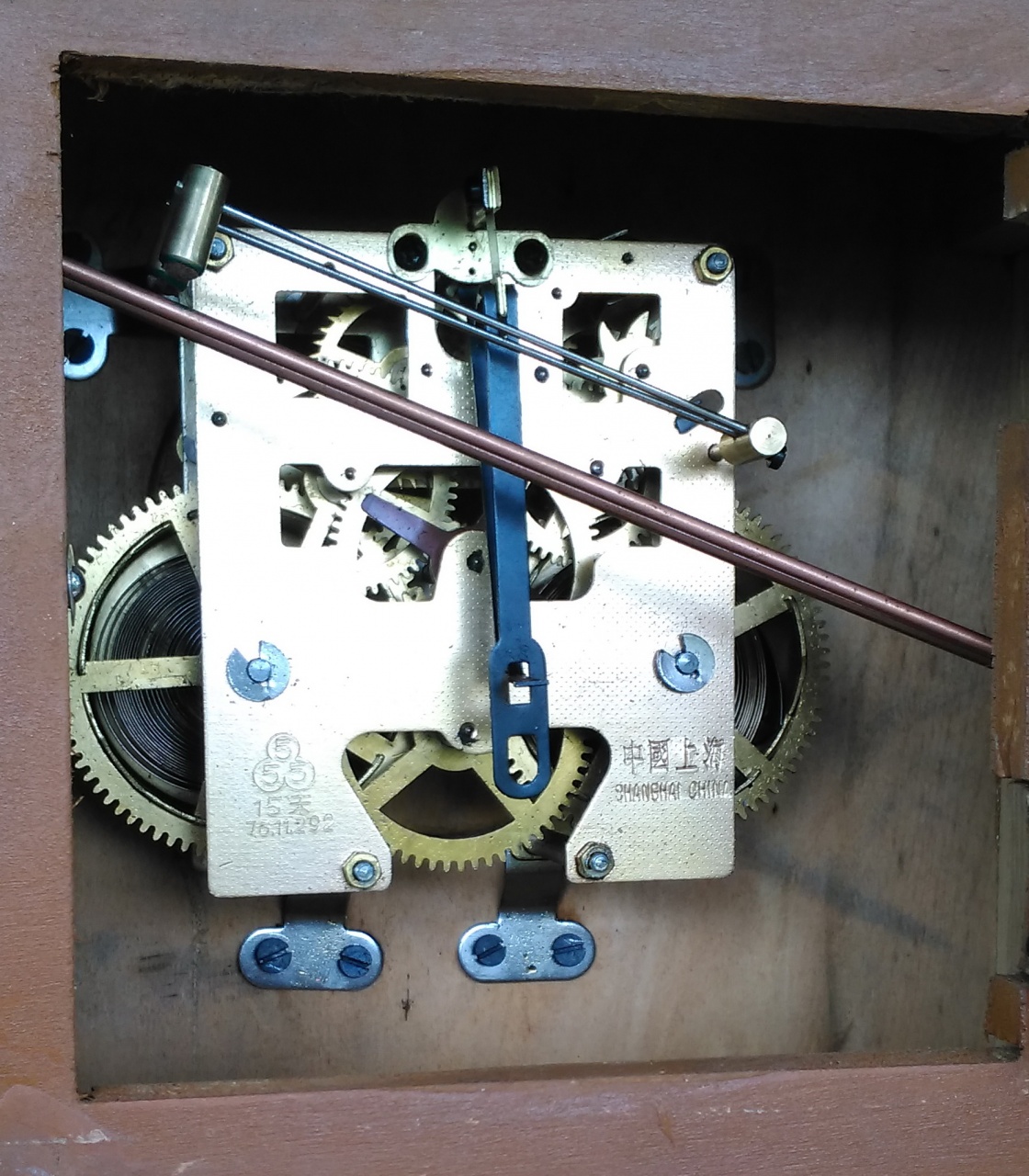 Здравствуйте, уважаемые форумчане! В очередной раз я обращаюсь к вам за помощью в определении изготовителя часов. Часы каминные. Отсутствует верхняя часть. Хотелось бы узнать, какой она должна быть. Также хотелось бы узнать, какова длина пендельфедера в данных часах, так как новый (на фото) был восстановлен по остаткам старого (оригинал или не оригинал - неизвестно).