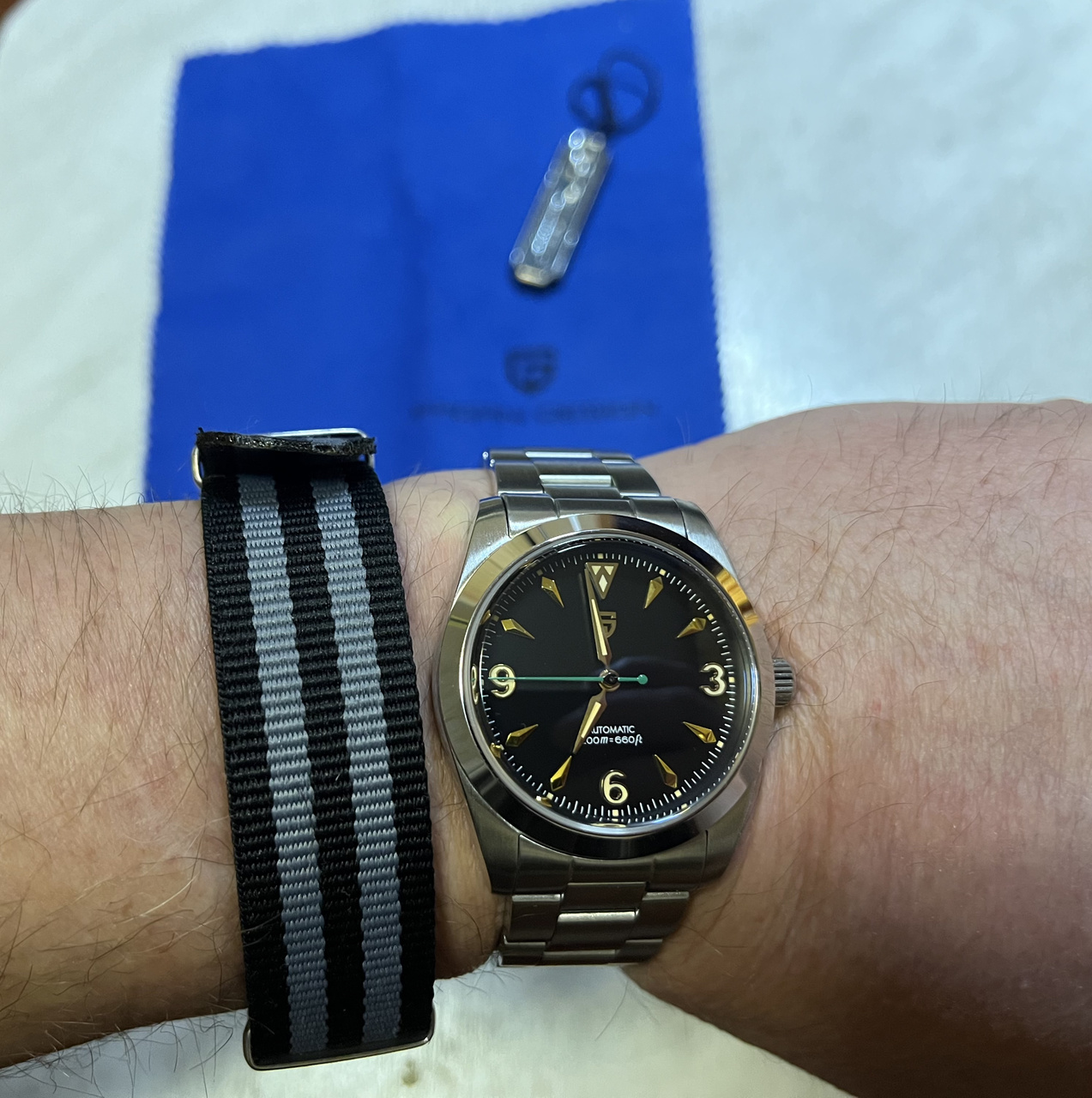 34 мм, 316L, Miyota 2035 Super, WR 50m, ремешок 18 мм, купольная минералка. |