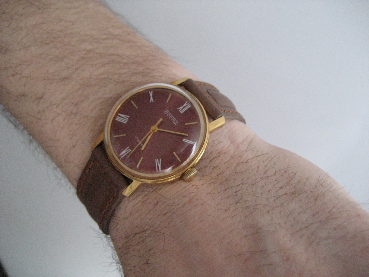 5) думаю, что конец 1970х годов. Командирские. Заказ МО СССР. Мех 2234. Ход точный. Подозреваю, что часовая стрелка не родная. Да, стрелка от амфибии. |