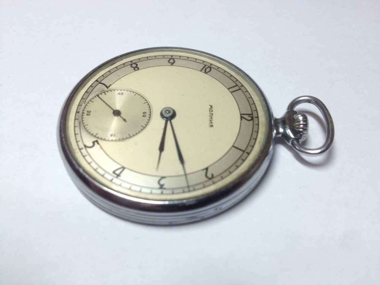 Купил в подарок брату вот такие часы. Он почитатель ВАЗовской техники, да я и сам на "Жигулях" езжу. Продавали как "Молнию", но я был немало удивлён механизму калибра 26 мм. Диаметр корпуса 47,5 мм. На передней крышке изображение белки на ветвях. Что это за модель и что за механизм? Не силён я пока в карманных... На циферблате только надпись "Сделано в СССР".