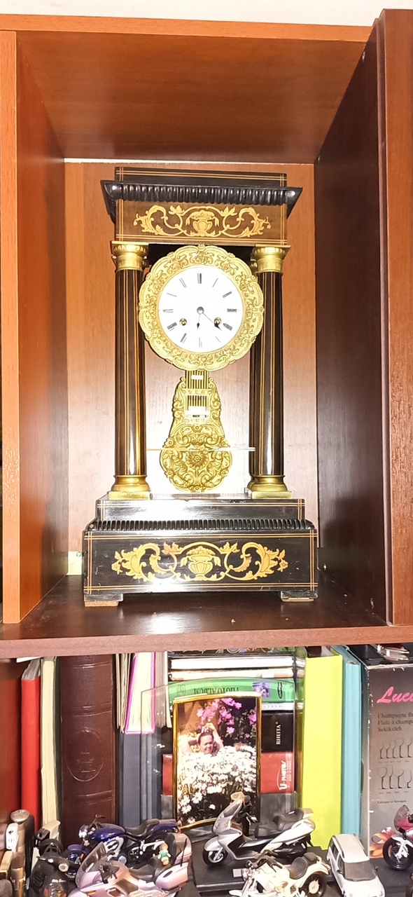Это отличные маркетровые портики. Дерево, скорее всего, палисандр. Сам по себе формат часов, установленных в портале, появился во Франции в последней четверти 18 века (считается, такая форма имела отношение к масонскому символизму: пару колонн называли толи порталом храма Соломона, толи еще как, и интересующийся всегда может развить тему, погуглив в интернете), на сломе веков он получил максимальное количество разных модификаций и версий от разных художников, но уже к 1820-м годам популярность сохранил только вариант, выполненный в виде строгого архитектурного греческого портика с четырьмя колоннами. Такое оформление стало популярным еще и потому, вероятно, что полностью стилистически отвечало моде того времени на все классическое, "ампирное". Поначалу, в 1820-30-е годы дорогие корпуса делались из бронзы, а альтернативой были деревянные корпуса, шпонированные красным деревом и украшенные бронзовыми золочеными накладками в ампирном стиле. В 1840-е вошла в моду отделка палисандром и накладные украшения были заменены на инкрустацию и интарсию (фабрикантам мебели уже не надо было заказывать дорогостоящую художественную бронзу на стороне). К этому периоду как раз и относятся Ваши часы, их можно датировать второй половиной 1840-х гг. В дальнейшем, в 1850-е, развитие корпусов пошло в сторону насыщения ставшей уже традиционной формы портика резными и фигурными элементами, так колонны могли делать витыми, добавляли очень много инкрустации металлами, появились эмали и резные навершия. В целом, мода на такие часы прошла в конце 1860-х, когда их и перестали производить. С уважением, Олег |