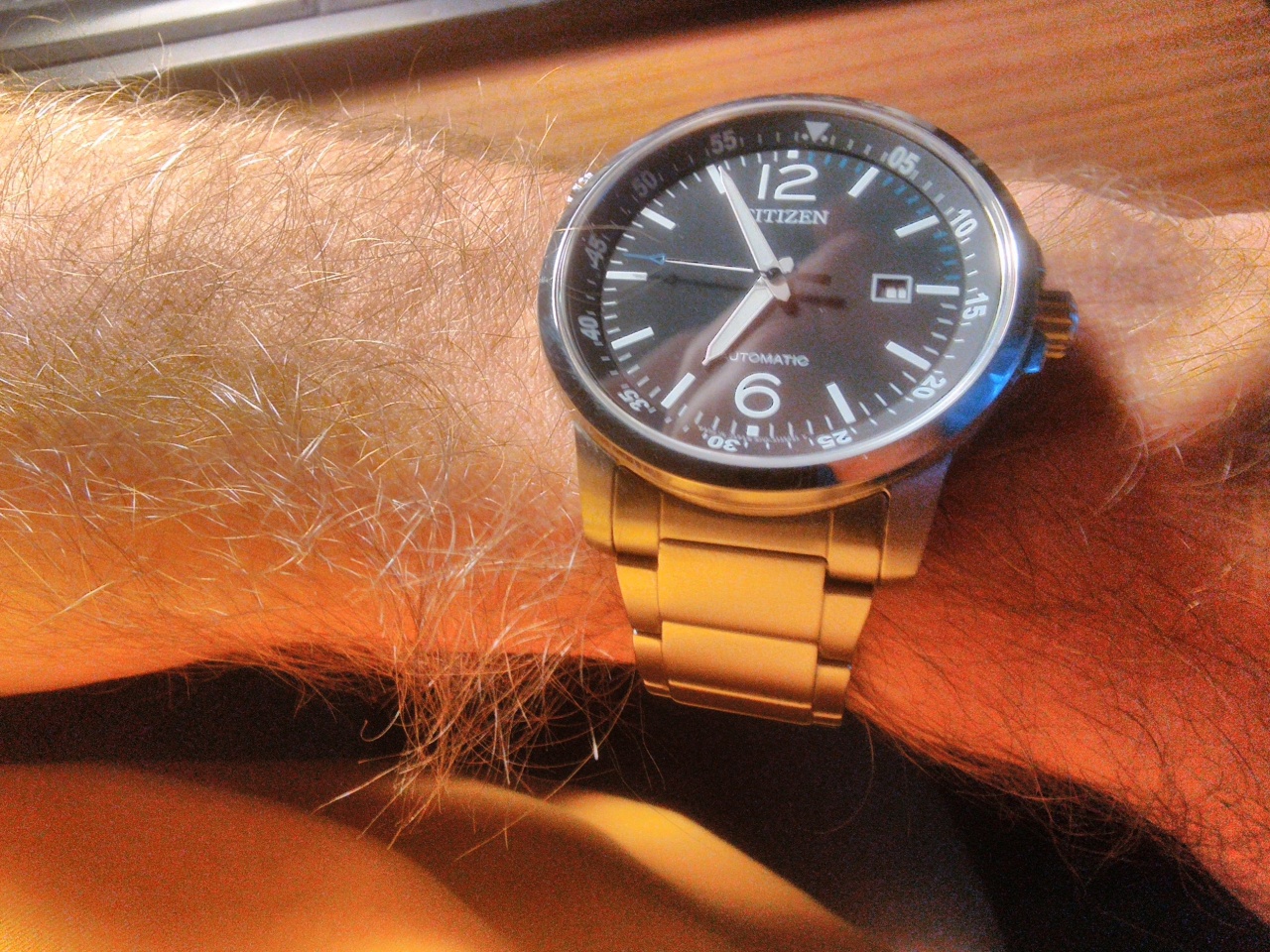 Вообще-то шел покупать один из эко-драйвов. Покупал в реальном магазине, не в интернете. Пришел стал мерять. Но, чего-то, в последнее время потянуло на часы в цвете золота и с браслетом, а эко-драйвы в нержавейке были все. Да и та модель, что приглянулась, эко-драйв, толстенькая такая, цифер правда классный, синий. Вот эта струя моды мне нравится, синий циферблат. Но померял, померял (продавщица три раза перекрестилась, пока я мерял, перемерял моделей 10 ситизена, по нескольку раз)и остановился на этих. Конечно, если бы циферблат был синий, дизайн вообще атас был бы. Но с синим, такой модели не было. Да, циферблат немного слишком аскетичен: ни циферки, ни разметки минут. Но тем не менее. Ношу неделю, нравятся. Стекло минеральное, плоское. Браслет неширокий, я обычно предпочитаю пошире, но в данном случае- новые ощущения, элегантность некая... да и не совсем он узкий. Звенья нравятся, красиво сделано, богато. Высота корпуса небольшая, в общем такая элегантная таблеточка. Диаметр немаленький, но и не уродски огромный- как раз, чтобы хорошо были видны часы на руке и время на них. В общем доволен, за 150 долларов вроде нормальная покупка. https://a.radikal.ru/a01/1909/0c/a17e98f04cbc.jpg https://b.radikal.ru/b31/1909/0c/afa2f2c23032.jpg https://d.radikal.ru/d10/1909/7a/567147862f3b.jpg https://a.radikal.ru/a30/1909/ac/3e18783e5459.jpg https://a.radikal.ru/a00/1909/50/32f33985dfd5.jpg https://b.radikal.ru/b08/1909/53/a45cfc1a5c0f.jpg |