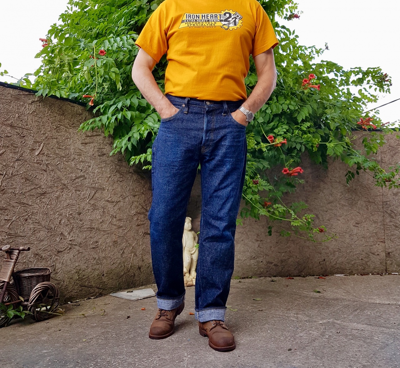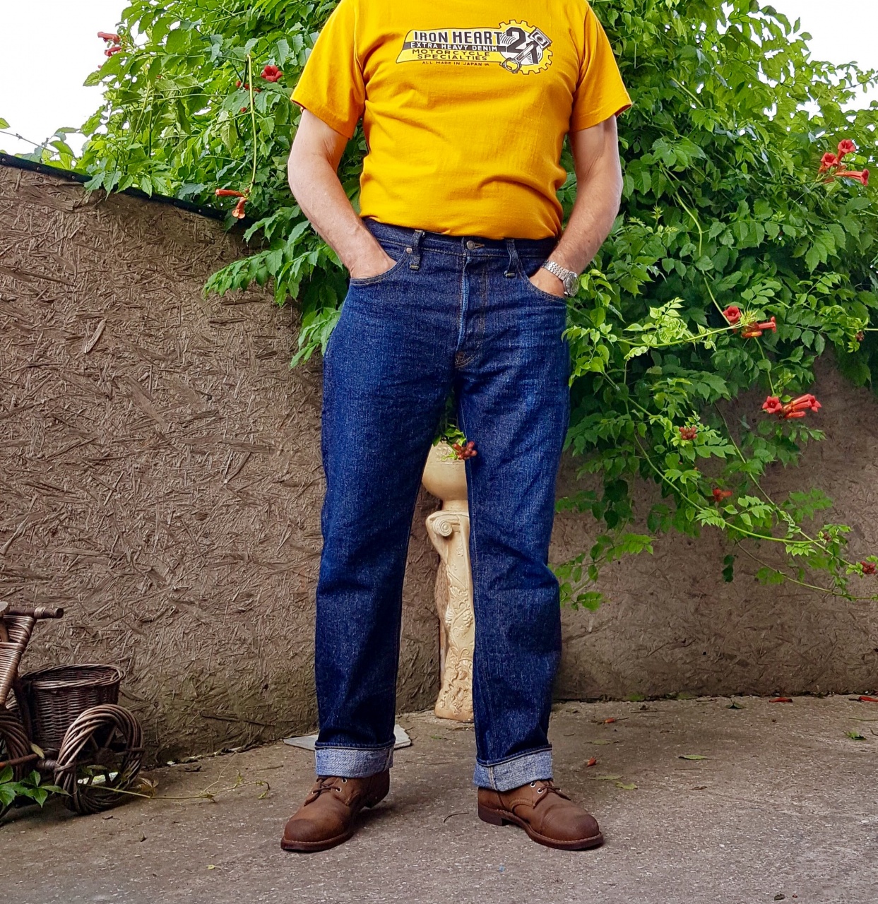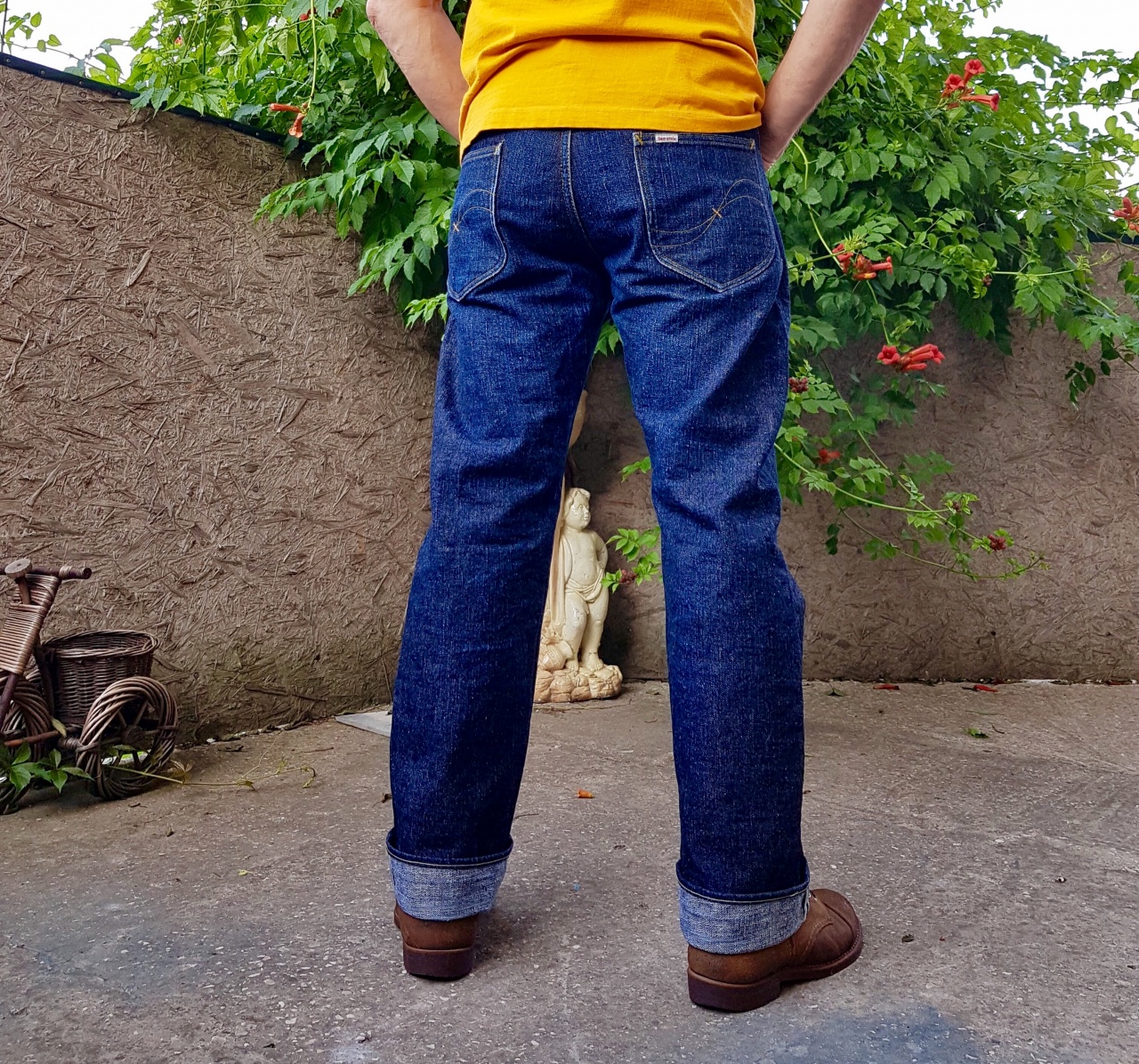 Вложений: 36 Представляю ув. сообществу очередную изюминку Самурайской коллекции :rolleyes: S110XJ 17oz Left Hand Twill Selvedge Straight , w34 , Lot.20 . Штан от того же владельца http://forum.watch.ru/showpost.php?p...postcount=2927 .... даже не знаю , какой круче ... вообщем , это надо видеть и мацать :rolleyes: Джинсы покупались в Денимио, где были подрублены цепным до 31 дюйма . Носились примерно 60 раз , 1 замачивание и 2 стирки в ручном режиме ( последняя моя ) . Деним невероятно интересный , я такой впервые встречаю в Самурайском стане . Тактильно и фактурно напоминает мне ONIевский Киханнен , очень мягкий .... нет в нем привычной самурайской брутальности ;) Деним собран прослабленно , как по мне , из микса нитей хлопков разного штапеля и разной плотности .... изнутри даже чувствуется массажная , релаксирующая шершавость .... вообщем , потрясная фактура :rolleyes: Окрас больше в сторону голубого , самый светлый оттенок в моей коллекции самураев . Фэйд породистый , контрастного чистого небесно- голубого цвета .... чумовой деним ! Сборка , я так понимаю , заточена на реплику Lee , штан интересный , детали постарался изобразить на фото .... для себя отмечу заклепку снизу ;) ( такое у меня впервые ) и красивейшие никелированные болты пончиком :rolleyes: Вложение 2621584Вложение 2621585Вложение 2621586Вложение 2621587Вложение 2621588Вложение 2621589Вложение 2621590Вложение 2621595Вложение 2621596Вложение 2621597Вложение 2621598Вложение 2621599Вложение 2621600Вложение 2621601Вложение 2621602Вложение 2621603Вложение 2621604Вложение 2621605Вложение 2621606Вложение 2621607Вложение 2621608Вложение 2621610Вложение 2621611Вложение 2621612Вложение 2621613Вложение 2621614Вложение 2621615Вложение 2621616 Ложка дёгтя- вылезающие кишки передних карманов ( заложили недостаточно материала конструктивно , съэкономили :D ) .... у меня уже было такое в S710 24oz ....»лечится» элементарно закрепками длиной 1-1,2 см с верхней стороны входа в карман , правда уменьшается размер входа .... но они там огромные , для моей руки не проблема , да и пользуюсь передними карманами редко . Вложение 2621581 Фит очень удобный , с глубокой комфортной посадкой . 34 размер , как по мне , зашёл нормально .... во всяком случае я хотел заиметь в коллекцию парочку шедевров в конкретном релаксе сверху до низу ;) .... надо же периодически давать тушке «отдых» от моих хронических облипонов :D Вложение 2621617Вложение 2621618Вложение 2621619Вложение 2621620Вложение 2621621Вложение 2621622Вложение 2621623 Размеры , конеш , зверские для меня .... аж пугают :D .... деним мягкий и тягучий .... после стирки , полагаю «раздуются» ещё побольше :D .... пояс придётся сразу страховать ремнём ;) Замеры после второй моей стирки в ручном режиме и сушки на солнце : Пояс-45,0 Хипс-58,5:eek: П.р-29,0:rolleyes: З.р.-40,0:rolleyes: Бедро-33,5 Колено -24,0:eek: Лег-22,0 Инсим-79,0 Вообщем обновой доволен на все 100% , прекрасный неповторимый шедевр в коллекцию :rolleyes: Фоты делал в 5 утра , пока не жарко , качество не гарантирую . |