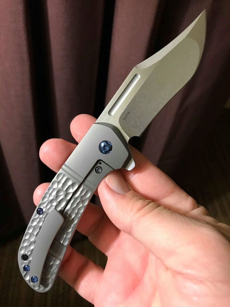 Вложений: 9 Ещё один флиппер от Reate с мраморным карбоном, тигровым титаном, микартой. Вложение 2319334Вложение 2319335Вложение 2319343Вложение 2319344Вложение 2319347Вложение 2319348Вложение 2319349Вложение 2319350Вложение 2319351 [media]https://youtu.be/4Tl0t3-bWsY[/media] Blade Steel S35VN Длина клинка 3 1/4 " Общая длина 7 1/2" Закрытая длина 4 1/4 " |