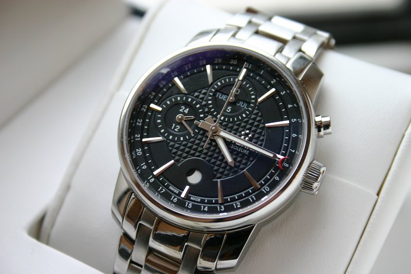 С точки зрения дизайна вам решать Кстати, оказывается есть такая этерна с гильошированным циферблатом и другими стрелками, изменено также окошко фаз луны http://uhrforum.de/eterna-soleure-mo...etragen-t92416 Вложение 242442 |