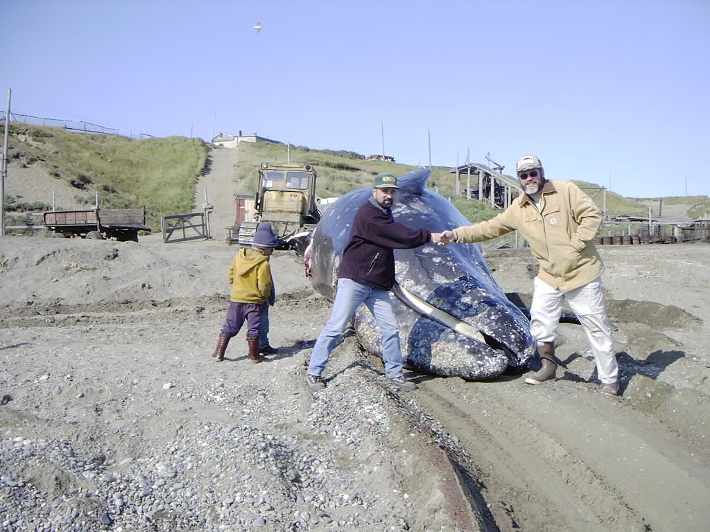 Вспомнил, увидев фото кита практику сдачи китов в Уэлькане чукчам колхозникам... Китов сдавали по весу, который высчитывали по метрам. Наш боцман меряет кита веревкой с узелками. 19 метров. Перемеряет председатель зверсовхоза. 15 метров... Меряют по новой...Результат тот же...Председатель хитро прищуривается, если такое вообще возможно с его разрезом глаз и говорит:"Яковлевич хитрый, но я хитрей..." На песке складывает 19 и 15 делит на два. Получает 17метров....Китобой"Звездный" записал в актив несколько тонн халявного кита...