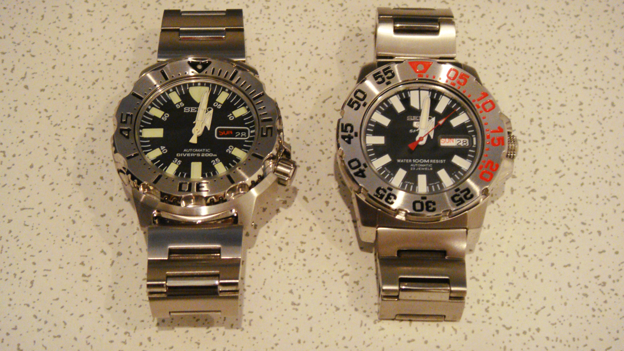 Вложение 23077 Вложение 23078 Ну и, как обещал, сравнительное фото с Seiko Diver's SKX779K (Black Monster): Вложение 23079 Видно, что Baby Monster на самом деле даже немного крупнее своего старшего товарища, да и браслет у них помассивней. И всё-таки Black Monster более гармоничный, на мой взгляд. Сравнительное видео (неплохая коллекция Монстров у человека): http://www.youtube.com/watch?v=dEvqMAcqaR0 |