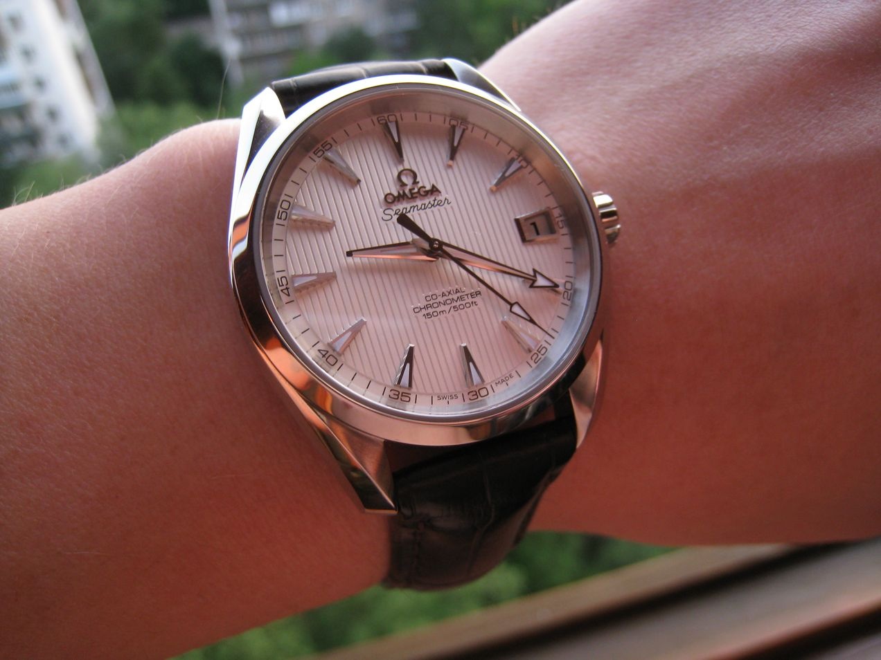 Но, если есть возможность, обязательно померьте белую, особенно в варианте с золотыми метками. На фото она выглядит подслеповато, на самом деле это абсолютно не так. Сам ношу такую, она полностью вытеснила с руки остальные часы. |