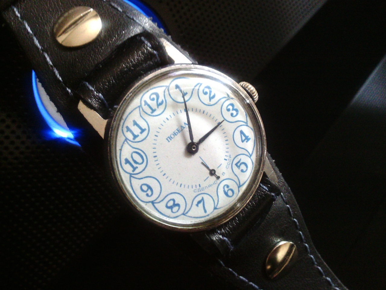 Поделюсь радостью! Подарил внуку на третье День рождение часы с ремешком, который сшил самостоятельно. Внук одел на руку, походил и нашел место отдельно ото всех часов))). Наверное понравились. Сложно уложить ремешок в 14 см. Потраченные мои силы того стоили. |