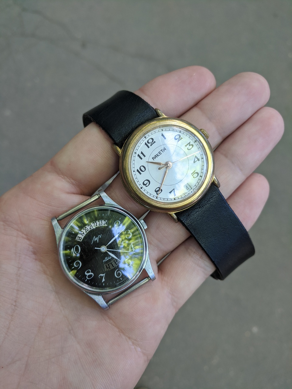 Не знаю, где еще спросить - раздел "Полет", а тема про лучший кварц.. :) В таких вот Ракетах какой калибр? Купил такие NOS, очень нравятся внешне по оформлению, вроде ходят, но есть подозрение, что не оч. уверенно. )) Есть смысл отдать часовщику почистить? Наверняка годы лежали. Сделаны конец 80-х - начало 90-х? Вторая мысль, если забыть про аутентичность - "скотлетить" - подобрать мех от Ронды или Мийоты, но это уже задача часовщику, еще если возьмётся возиться и за сколько.. Просто как по мне выглядят реально классно. |