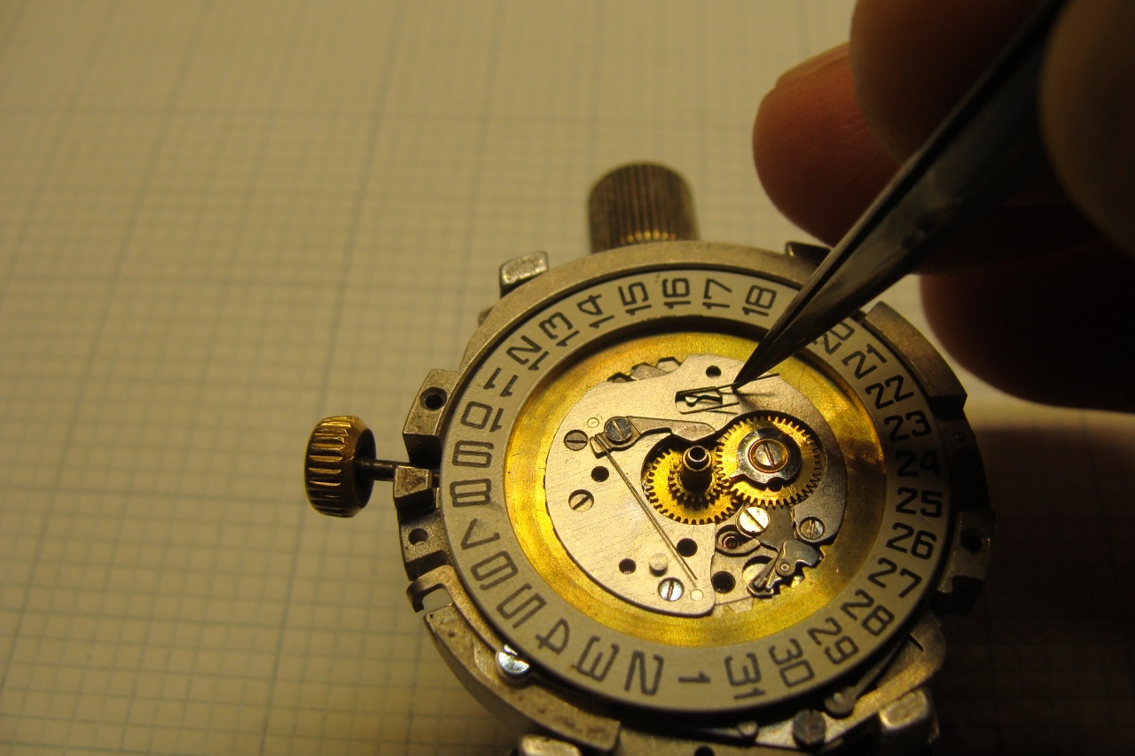 Собираю так же как и все кто здесь отвечал - на перевернутый мост ставлю рычаг и пружину, потом беру пинцетом за всю эту конструкцию, то есть можно помахать собранным мостом или по столу постучать, ничего никуда не вылетит так как удерживается пинцетом. Кладу мост на механизм, под толкатель календаря у суточного колеса, с поворотом и отжимая толкатель суточного колеса ставлю мост на место, потом только остается рычаг отжать чтоб встал между зубьев календарного диска и прикрутить его. |