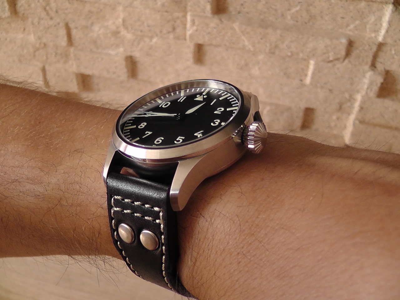 После прошедшей эйфории, могу теперь рассуждат на "трезвую голову". Как плюс, выделю идеальную считываемость времени. На Sinn, как это ни странно может прозвучать, мне мешал базель. Здесь же только цифер и стрелки, всё просто и ясно. Секундная стрелка тоже с люмом, на Sinn к сожалению была без. Вчера наставил время по электронным радиоуправляемым часам. Пока идут секунда в секунду, дальше посмотрим.