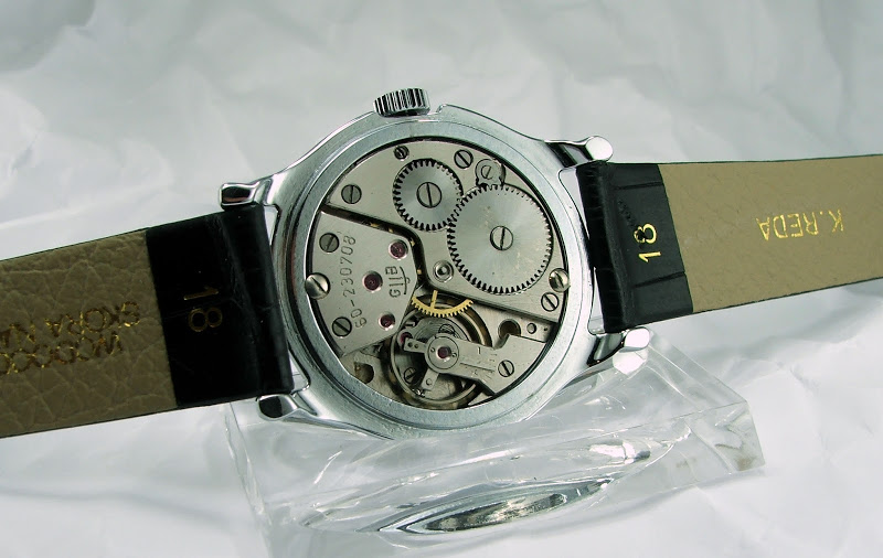 После демонтажа и вывоза в СССР в 1945-46 гг. оборудования заводов UROFA и UFAG было собрано и восстановлено "с миру по нитке" общество "Produktionsgemeinschaft Precis", которое в 4 квартале 1946 г. запустило в производство калибр 61 для наручных часов, это было скорее опытное производство, поскольку до середины 1947 г. выпустить успели только порядка 300 штук. К этому времени калибр был окончательно доработан и получил наименование "613". 613-й калибр Precis выпускался в 1947-51 гг. пока общество не подверглось ликвидации и не вошло в состав вновь образованного народного предприятия GUB, где производство продолжалось еще чуть более года. Таким образом, за 5 лет было выпущено около 300 тысяч штук. Precis 613 или, встречается и такая версия наименования, Urofa 613, в последний год "жизни" GUB 613, имеет диаметр 28 мм, два исполнения 7 и 15 камней, плоскую спираль баланса, анкерный спуск и децентрализованную секундную стрелку на 6 часах. Сегодня прибыли из Германии вот такие часики одной из самых ранних серий, 1947 г. выпуска. Сохранились вполне прилично. Как обычно, сейчас у меня на руке проходят суточное тестирование:D. http://forum.watch.ru/attachment.php...1&d=1386265955http://forum.watch.ru/attachment.php...1&d=1386265955http://forum.watch.ru/attachment.php...1&d=1386265955http://forum.watch.ru/attachment.php...1&d=1386265955http://forum.watch.ru/attachment.php...1&d=1386262528 |