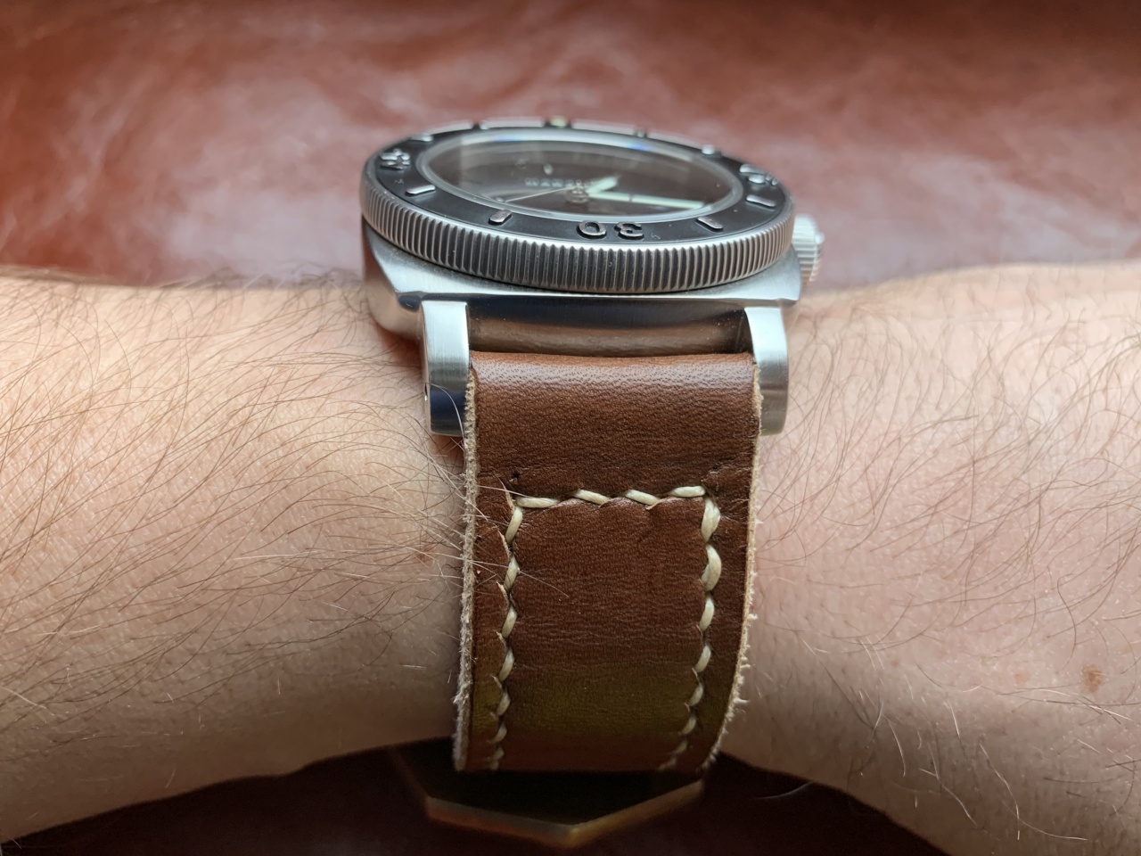 Сегодня решил перевернуть ремешок. Для меня сидит очень удобно.