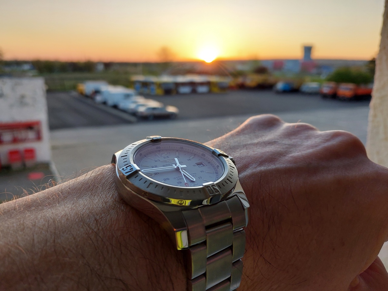 Лимитка One of 1000. С противовесом на секунде в виде самолета . Задняя крышка имеет рисунок в виде турбины двигателя самолета. Детище рожденное при партнерстве Breitling и Swiss Air. Купить можно было только на борту самолета после его отрыва от земли т е в воздухе. Номер лимитки не писался на часах а прописывался только в документах рукой командира самолета конкретного рейса. который после продажи часов сообщал в Breiling о сделке и ему называли номер который нужно поставить в свидетельстве о лимитной серии. При этом еще указывался номер рейса число и имя командира .