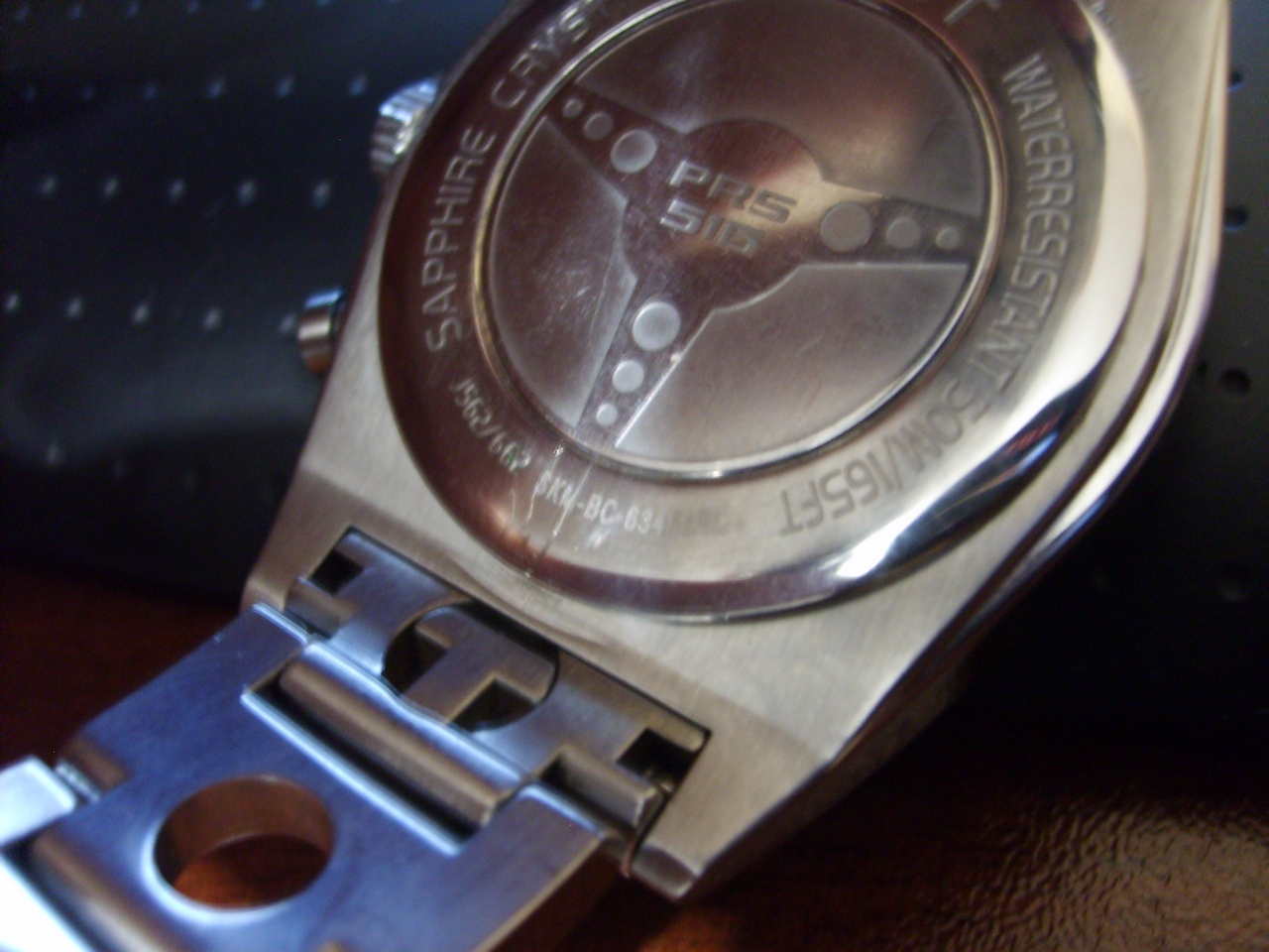 Купил Ле Локль т.к. хотел часы с автоматикой и что бы были четкие стрелки и стояли цифры, хоть и римские. Просто на PRS не сразу сообразишь который час. А теперь коронная фотография как делать не надо: смотрим на крышку внизу, видите эти ужасные царапины, это я пытался их вскрыть что бы поменять батарейку, мой вам совет лучше сдать часовщику. Корпус все равно я не открыл (даже сломал отвертку часовую: маленькую, должно быть китайскую), а царапин понаставил :(