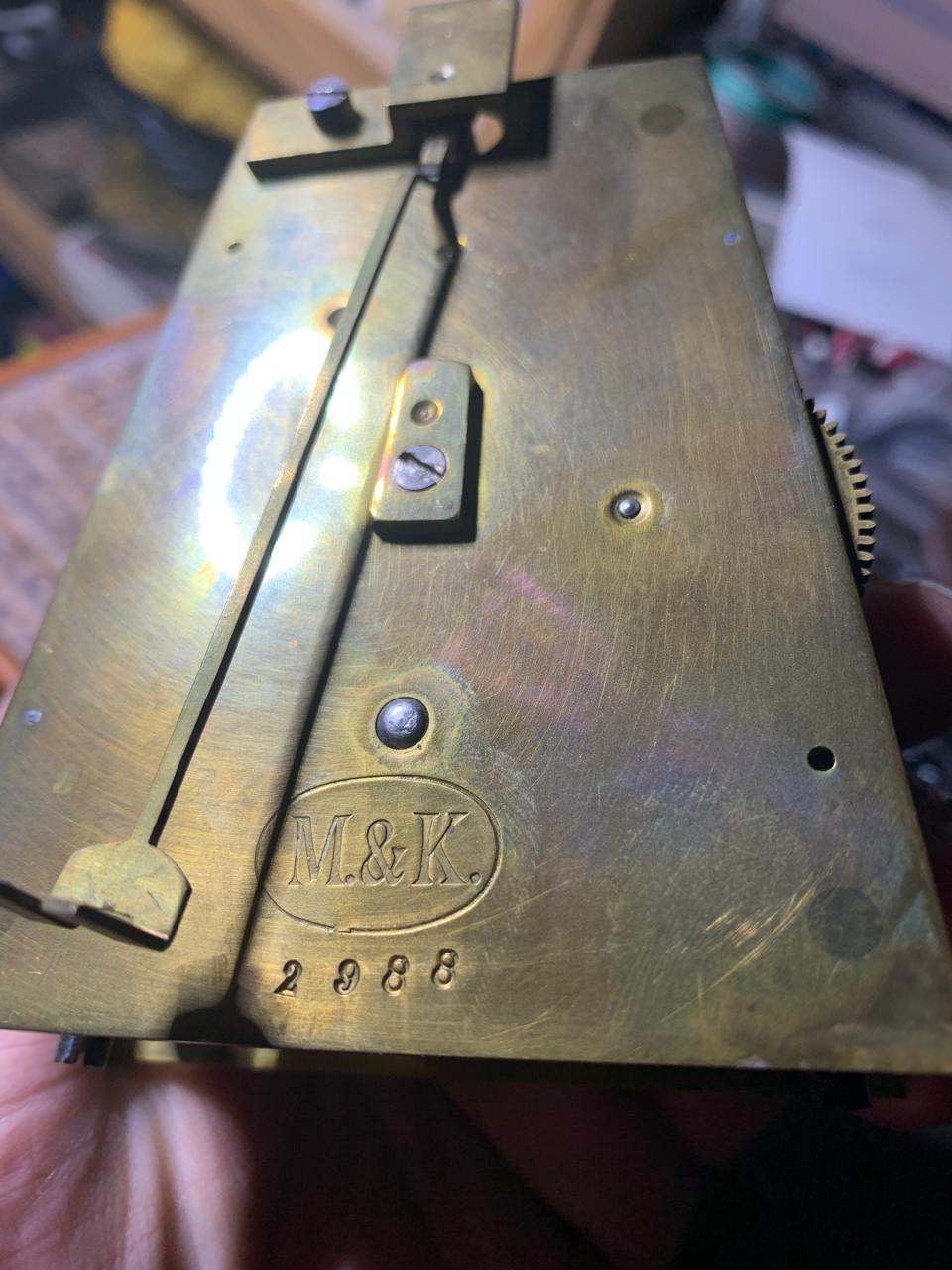 По корпусам: либо нет, либо очень невнятные остатки. Есть несколько механизмо с маркировкой M&K. Вложение 3812484 На сайте Микролиск эту сигнатуру относят к Müller & Kern Wohnraumuhren, Signaluhren, Handel; Breslau, Polen (ehemals Deutschland); gegründet 1875, bis ca. 1904 Вложение 3812479 Вложение 3812480 Вложение 3812481 Вложение 3812482 Вложение 3812483 |