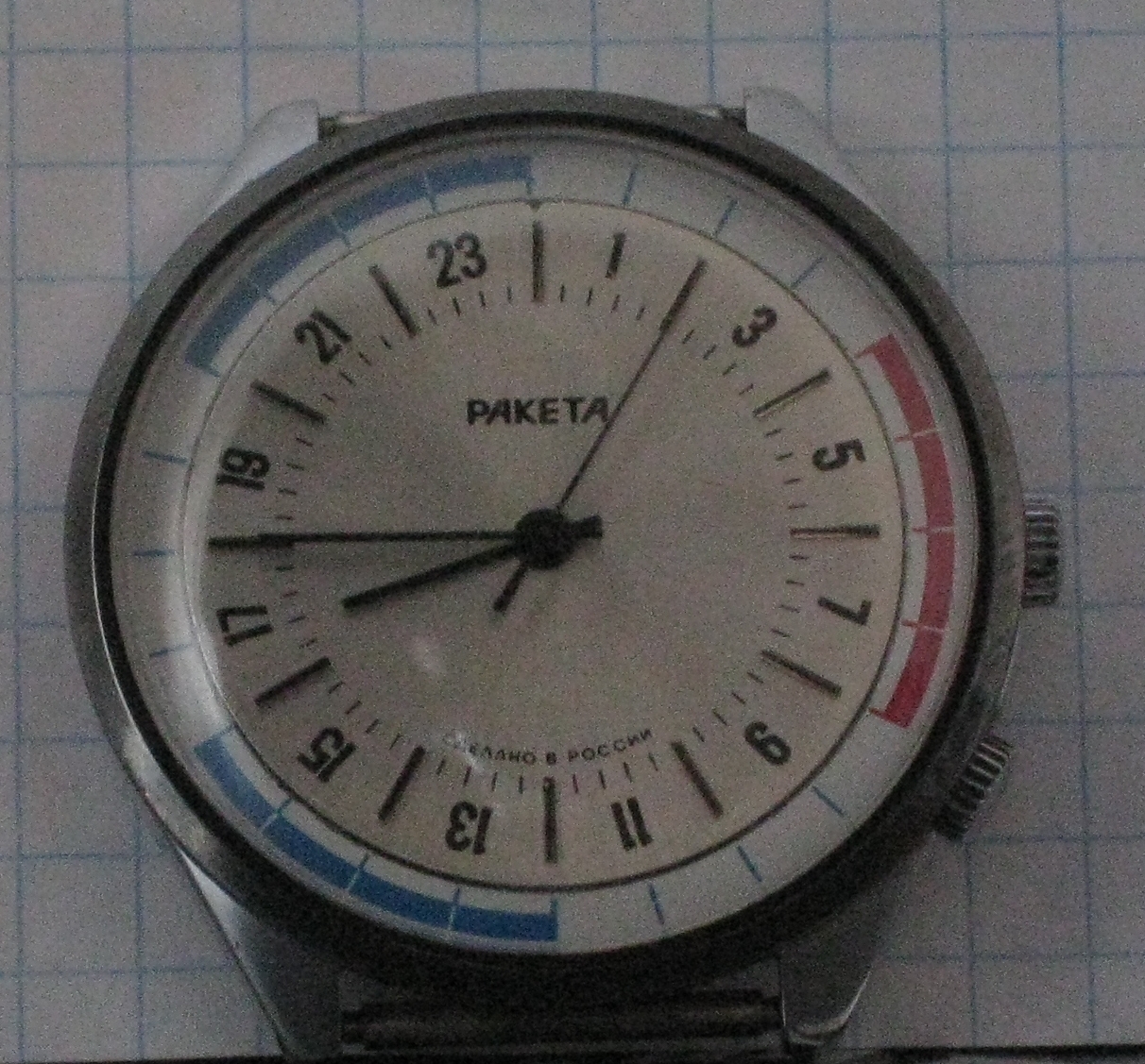 признаюсь честно: вышепоказанную "Рекету" левую на снимке с цветной вставкой собрал сегодня сам из подручных материалов: корпус от ракеты с вечным календарем, механизм с циферблатом подлинный "сделанно в СССР" вставка сам не знаю от куда взялась....