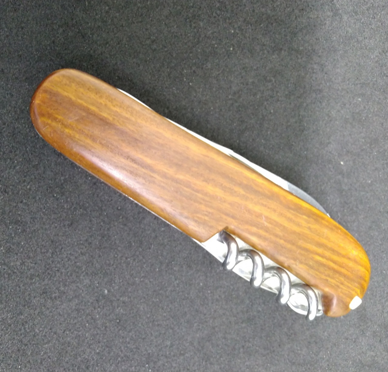 Вложение 2740481Вложение 2740482 Фикс в подарок на ДР товарищу. Клин из 95х18 с криозакалкой, ковал и термичил другой мой товарищ по моему заказу. Вложение 2740483 Вложение 2740484 Поскольку все свои ножи растерял и раздарил, купил самый дешевый Керш флиппер, накладки из полиэтилена выкинул, поставил бакаут вместо них. Пока хватит на кармане таскать, потом уже что-то поприличнее возьму переделаю. Вложение 2740485 Вложение 2740486 Давно хотел попробовать. Взял свой боевой викс потертый, снял накладки и сделал новые из бакаута. Логотип пришлось отдельно травить на пластинке мельхиора и врезать в дерево, получилось не очень. Но самый гемморой был сделать выборки под пинцет и зубочистку, чтобы не выпадали и смотрелось прилично. :) |