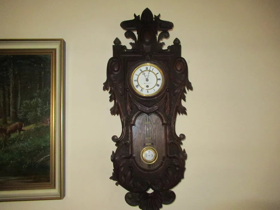 У Вас очень редкий экземпляр, пружинный механизм с боем фирмы P. Michaelis & Co. Почитать можно здесь http://forum.watch.ru/showthread.php...2A%2A&page=307 пост 3068 и ниже. Эта фирма сделала большое количество механизмов (больше 65 тысяч). В основном это жильные молчуны. Пружинных от общего количества меньше 10 %, у меня в базе данных соотношение молчуны / с боем = 9/3. Долгое время никто не знал авторов этих часов, но у каждого польского коллекционера есть "усатые", такое название из-за особого анкерного моста у жильников. Вложение 3873637 Вот для сравнения пружинный механизм с боем. Кстати, пружинные только с низкими серийными номерами в диапазоне 2800-5500: Вложение 3873638 Вложение 3873639 Фото корпусов с пружинными механизмами: Вложение 3873641 Вложение 3873642 Вложение 3873643 Вложение 3873644 С уважением, Татьяна P.S. Скорее всего нумерация у этой фирмы была сквозная, поэтому Ваши часы конца 1860-ых гг |