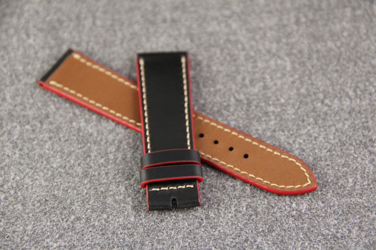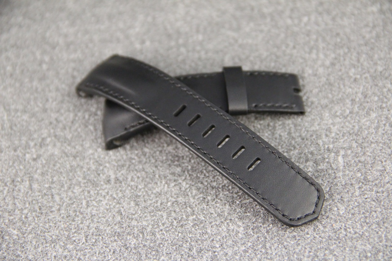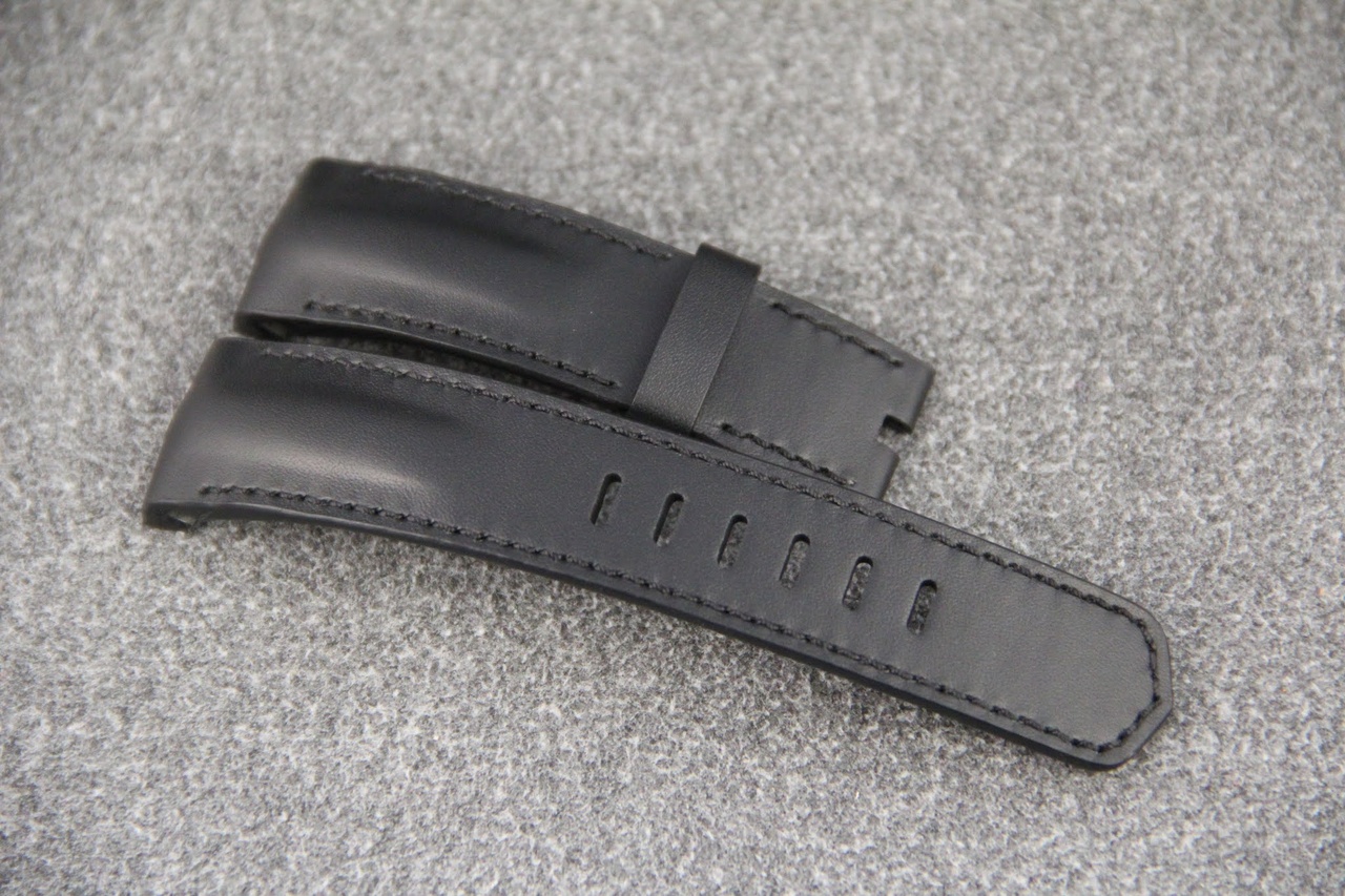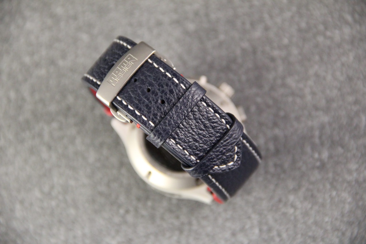 Ремешок для часов Breitling Navitimer 806. Верх ремешка сделан из кожи теленка. Подкладка ремешка из кожи теленка. Ремешок прошит вручную.