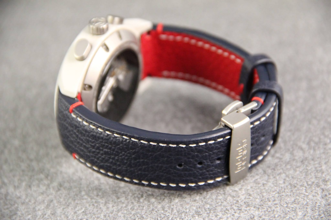 Ремешок для часов Zenith Pilot El Primero Big Date Special. Верх ремешка сделан из кожи теленка растительного дубления. Подкладка ремешка из кожи теленка. Ремешок прошит вручную.