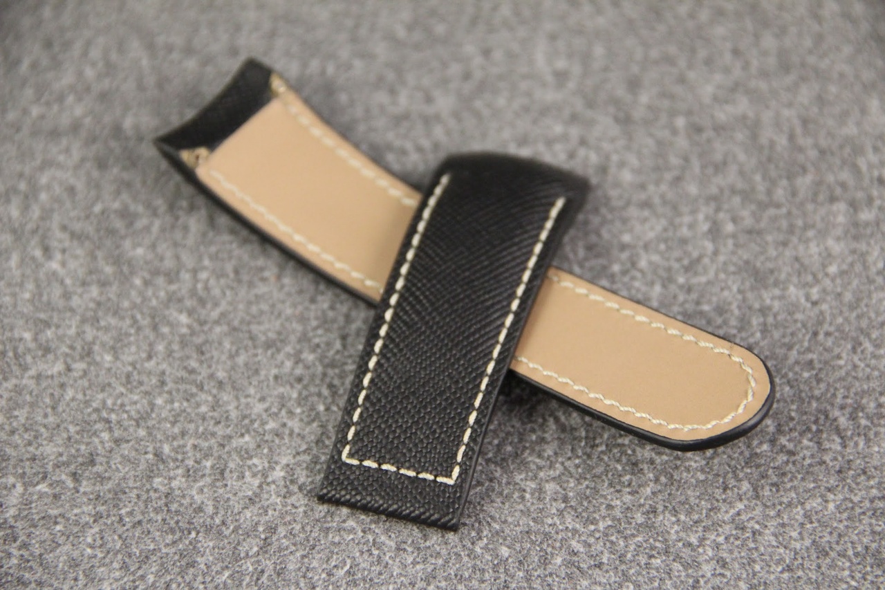 Ремешок для часов Ebel 1911. Верх ремешка сделан из кожи теленка «Saffiano». Подкладка ремешка из кожи теленка. Ремешок прошит вручную. Перенос пластиковых вставок в основание ремешка.