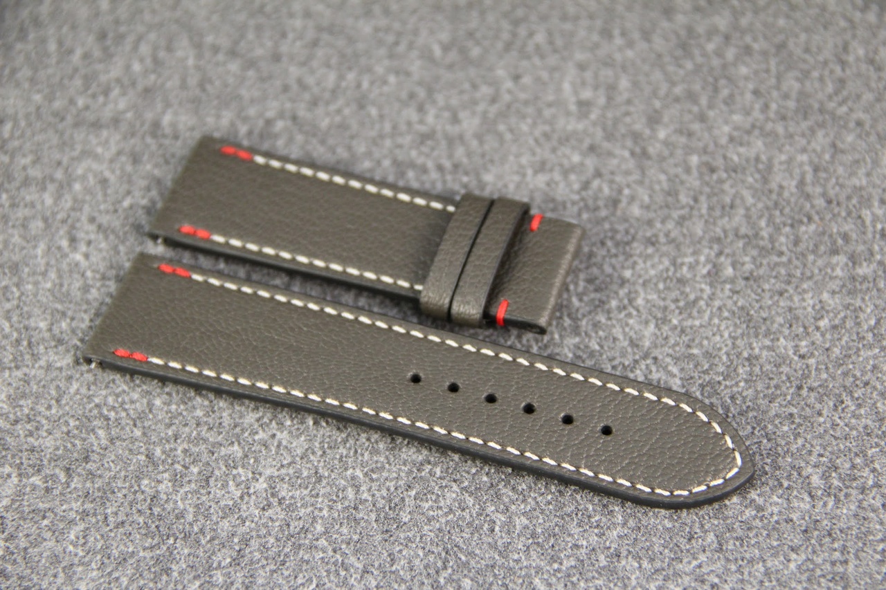 Ремешок для часов Panerai Luminor Due PAM 903. Верх ремешка сделан из кожи теленка. Подкладка ремешка из кожи теленка. Ремешок прошит вручную. Установлены шпильки для быстрой замены ремешка.