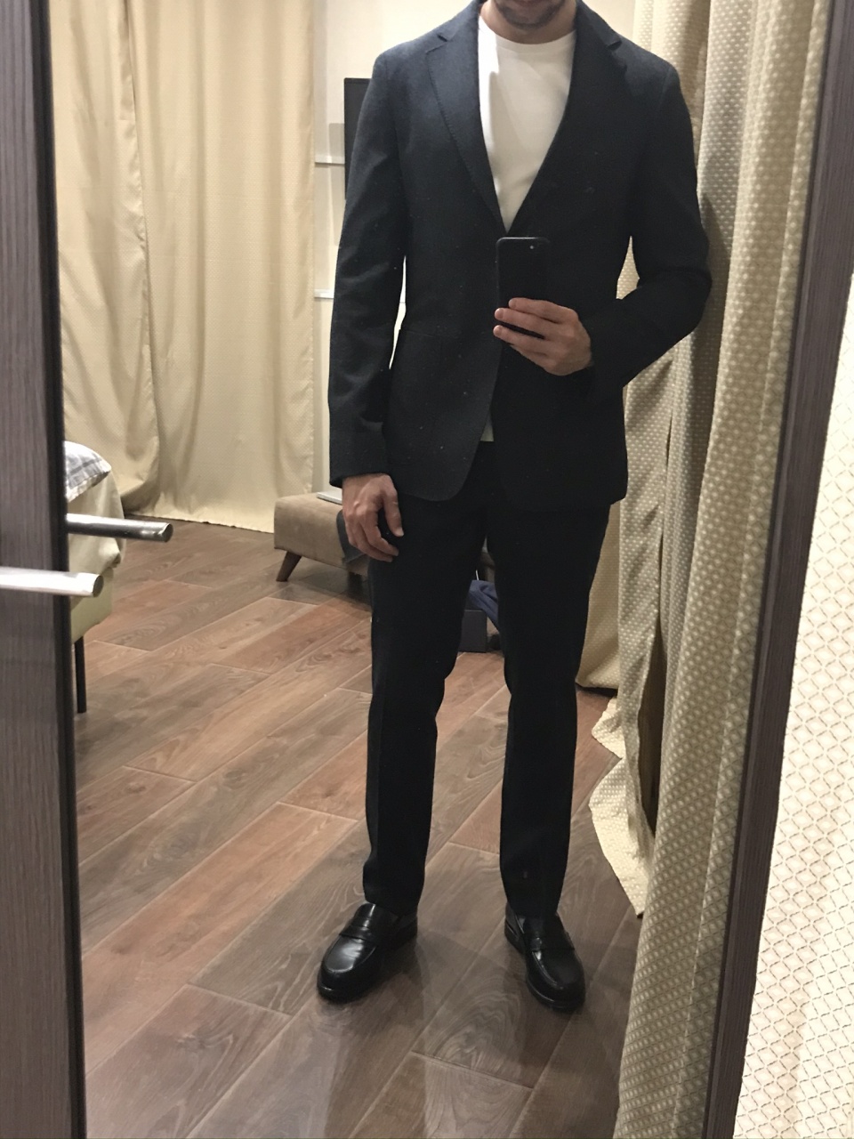 А что там с высотой талии брюк? По-моему, идеально. И ремень как надо - не слишком строгий и не слишком развязный. И длина штанов - отличная. С учетом роста, не стал их сильно укорачивать. Лично по мне - идеально все.