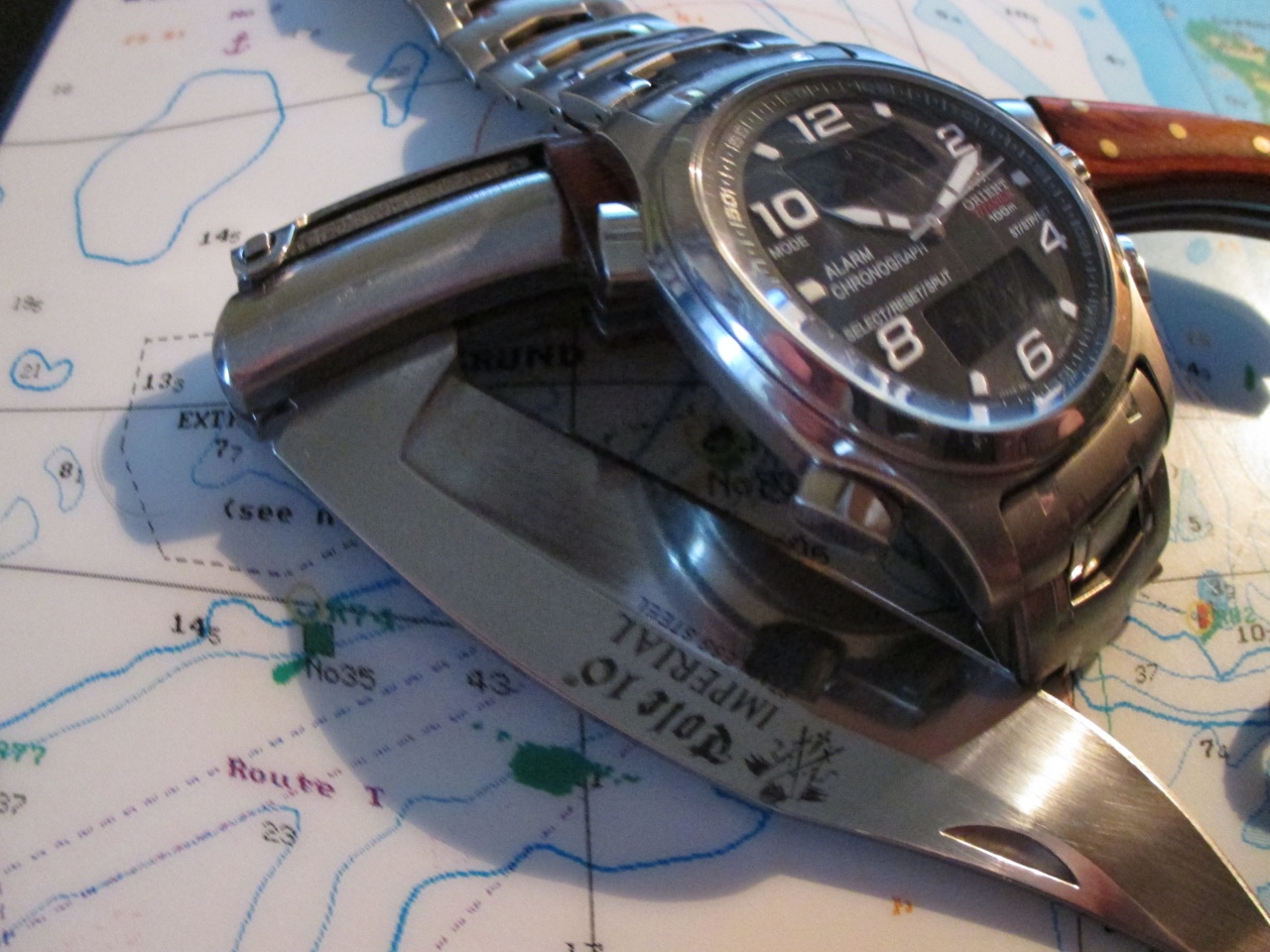 Ножи и часы люблю с детства!Сначала были первые,которые постоянно менялись:терялись,ломались и приобретались заново.Первые часы (очень просил :) )мне подарили в 9 лет.Марку не помню,но ремешок до сих пор как живой перед глазами:как бы кожаный,с одной стороны окошко с компасом,с другой фото с Гагариным,Юрием Алексеевичем!Куда делись :D?Иногда задумаваюсь чем более болен :),НБ или ЧБ?Судя по затратам на режущее-НБ,а по хотелкам-ЧБ!И так всю мою жизнь они со мною рядом,часы и ножи!