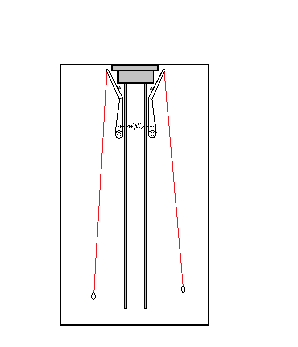 Ну, если уж затевать самострой с верёвочным приводом и возвратными пружинами, то я бы пропустил эти верёвочки сквозь боковые стенки, чтобы каждый раз дверцу не открывать. В стенках можно выполнить грушевидные отверстия, а на верёвках завязать узелки, на которые они будут фиксироваться.