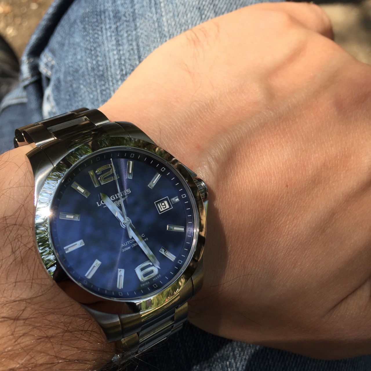 Простой конквэст имхо более классический,но синий в офис-сомнительно.Белый цифер-номер один,черный-номер два и не обязательно Лонжин....