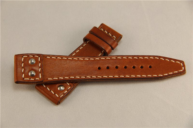 Ремень для часов Breitling Skyland Avenger. Верх ремня из кожи страуса, подкладка из кожи оленя. Ремень прошит в ручную нитками двух цветов.