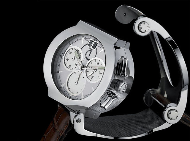 Техника переворота Две компании Jaeger-leCoultre и Cartier почти одновременно, в начале 30-х годов прошлого века, начали выпускать часы-перевертыши Reverso и Tank Basculante. Вложение 25306 Reverso был придуман для британских колониальных офицеров, которым надоело, что стекла часов бьются от ударов клюшкой во время игры в поло. Новинка пришлась по вкусу не только спортсменам-аристократам всем понравилось, что корпус Reverso одним движением поворачивается в держателе, а на задней крышке можно вырезать фамильный герб, монограмму или портрет. Если Reverso появился на свет как самостоятельная величина, то Tank Basculante это одна из модификаций наручного «танка» от Cartier. Вложение 25307 Боевая бронемашина на гусеничном ходу вдохновила Луи Картье на создание новой модели часов еще в 1917 году. Tank Basculante, как и Reverso, разворачивается на 180 градусов, только в другой плоскости и внутри подвижной рамы. Такая конструкция позволяет использовать его как миниатюрные настольные часы (то есть циферблат можно развернуть лицом к себе). Но Tank Basculante не удержался в строю: Cartier, выпустив несколько лет назад «римейк» этой модели, сняла ее с производства. А вот Reverso снова в зените славы. Вложение 25308 Он выпускается во всех возможных вариантах - с одним или с двумя циферблатами, с любыми усложнениями, в подчеркнуто скромном или в роскошном ювелирном оформлении, с механическими и кварцевыми калибрами. Недавно перевертыш появился и в арсенале Dubey & Schaldenbrand - это хронограф Spiral-Verso VIP. Уложенный на «блюдце» корпус поворачивается во все стороны как теодолит. Дополнительных функций на обороте нет, зато лицевая сторона нагружена указателями под завязку: счетчики хронографа, окошки календаря, фазы луны& Но первой в глаза бросается тонкая спираль на центральной оси. Вложение 25309 В 1946 году Джордж Дюбей изобрел новый тип сплит-хронографа более простой по сравнению с традиционными (сплит-хронограф имеет две секундные стрелки и позволяет измерять длительность двух разных событий, начавшихся одновременно). Дюбей снабдил одну из секундных стрелок спиралью эту стрелку можно было остановить нажатием кнопки (не более чем на минуту) и зафиксировать промежуточный результат, в то время как вторая стрелка продолжала отсчет. При отпускании кнопки первая стрелка получала импульс от спирали и догоняла вторую. К сожалению, Spiral-Verso VIP не может продемонстрировать эту оригинальную технику хронометрирования его центральная спираль это чисто декоративный элемент. Фирма TAG Heuer реализовала идею «переворота» в модели Monaco Sixty Nine. Вложение 25310 Это симбиоз двух часов, сделанных в разной эстетике. С двумя циферблатами и двумя механизмами. Одна сторона механика с ручным заводом, выдержанная в стиле Monaco образца 1969 года. Другая сторона цифровой дисплей современного кварцевого хронографа с точностью измерений до одной тысячной секунды, с запоминанием результатов и выведением лучшего времени, с будильником, календарем и функцией stand by. Как всегда в случаях с перевертышами, мастерам TAG Heuer пришлось придумывать для Monaco Sixty Nine особый вариант сочленения корпуса и держателя (каждая фирма патентует свой способ и не позволяет его повторять). Марка de Grisogono, двигаясь по нарастающей, после Instrumento N° Uno представила Instrumento Doppio, то есть «двойной инструмент». Вложение 25311 Этот стильный хронограф внушительных размеров демонстрирует на обороте не только свой м