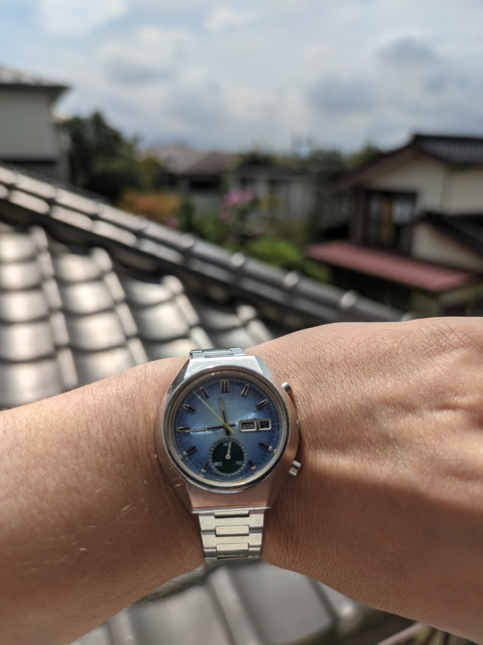 Не хотел плодить посты, поэтому пользуясь случаем хочу себя же поправить. В музее Сейко был представлен 6139-6010 с синим циферблатом - одна из первых моделей вышедших на рынок в 1969.