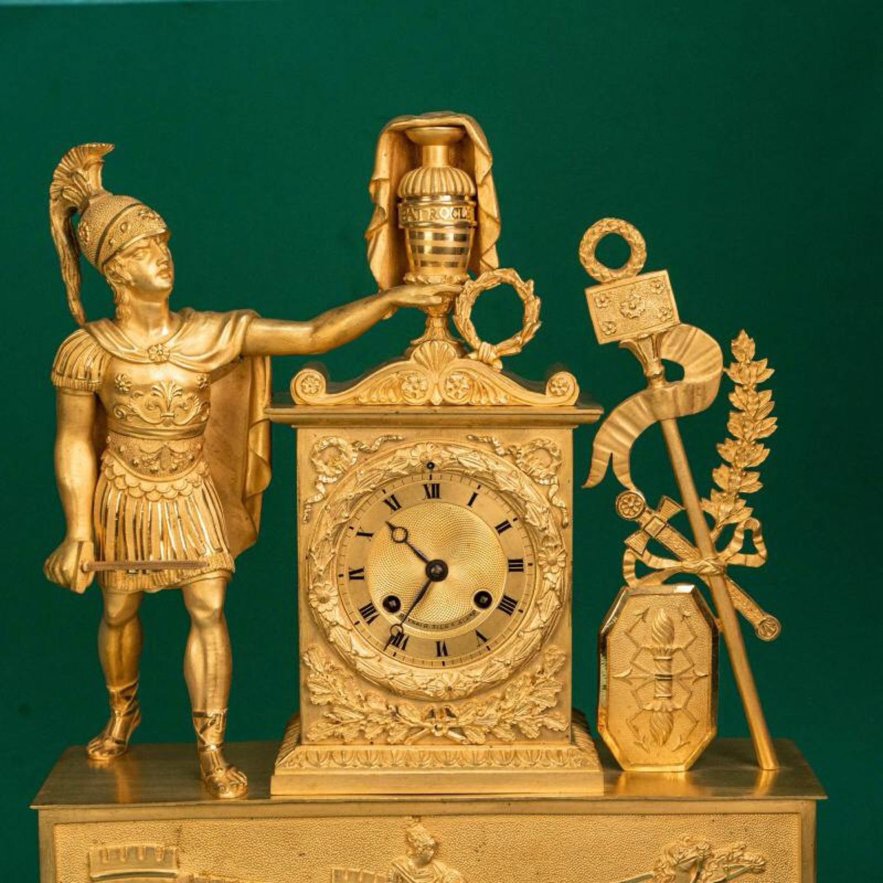 По поводу вторых часов: возможно, это Гефестион — ближайший друг Александра Македонского и один из его полководцев. "У Арриана в «Походе Александра» (начало II века) сообщается о том, что, отправляясь в поход, Александр посетил Трою и «возложил венки на могилу Ахилла, а Гефестион, говорят, возложил венки на могилу Патрокла»; Клавдий Элиан в «Пёстрых рассказах» (III век) поясняет: «Когда Александр украсил венком могилу Ахилла, Гефестион также украсил Патроклову могилу, желая дать понять, что любим Александром, подобно тому, как Патрокл был любим Ахиллом»". Ну, Греция - это отдельная культура :) По поводу первых часов: Кристис в одном случае тоже за Александра голосует https://www.christies.com/lot/pendul...=4120444&lid=1 А в другом называет римского генерала Марка Фурия Камилла (Marcus-Furius Camillus), который разбил галлов, осаждавших Рим (390 г. до н. э.), и впоследствии восстановил город, за что получил прозвище второго основателя Рима. Но эта версия мне кажется слабой, так как Марк Фурий был крайне бородат. https://www.christies.com/lot/an-emp...=4002105&lid=1 |