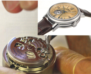 Omega Калибр 8500/8501 С внедрения коаксиального спуска, изобретенного часовым мастером Джорджем Дэниэльсом, для марки Omega началась новая эра. К настоящему времени именитый часовой бренд, входящий в Swatch Group, превратился в настоящую мануфактуру, а новая технология изготовления спуска была использована при создании новейшего базового часового механизма, сконструированного в 2007 году. Модель, оснащенная эксклюзивным механизмом, носит имя Hour Vision. Omega Калибр 8500/8501 МЕХАНИЗМ: автоматический; коаксиальный спуск; два заводных барабана, запас хода 60 часов; сертифицированный хронометр (C.O.S.C.); диаметр 29мм (131); толщина 5,5 мм; камни - 39; баланс без градусника, со свободно качающейся спиралью; частота колебаний 25 200 полуколебаний в час ФУНКЦИИ: часы, минуты, секунды; дата ПРИМЕЧАНИЯ: платина, мосты и ротор роди-рованные, декорированы «женевской» полосатой шлифовкой Arabesk, заводные барабаны, баланс и винты вороненые Panerai Калибр Р.2002 После успешного возрождения итальянской культовой марки, начавшегося с выпуска довольно импозантного, но в техническом отношении малоинтересного римейка классических часов, группа Richemont приступила в 2002 году к реализации следующего пункта в плане развития Panerai. С четырьмя собственными часовыми механизмами, созданными на базе калибра с ручным заводом, и хорошо оборудованной резиденцией фирмы в Невшателе современная Panerai вполне может претендовать на престижное в часовом мире звание «мануфактура». Panerai Калибр Р.2002 МЕХАНИЗМ: с ручным заводом; три последовательно соединенных заводных барабана; запас хода 8 дней; устройство для перевода стрелок с автоматической установкой «на нуль» секундной стрелки; диаметр 31,8 мм; толщина 6,6 мм; камни - 21; баланс Glucydur с переменной инерционностью; частота колебаний 28 800 полуколебаний в час ФУНКЦИИ: часы, минуты, секунды; время второго часового пояса; указатель «день/ночь»; указатель запаса хода (прямолинейный) ПРИМЕЧАНИЯ: количество деталей 245 шт. Piaget Калибр 561Р Годами используемая в качестве «запасной скамейки» по производству механизмов, фирма Piaget разрабатывала и производила дорогие эксклюзивные конструкции по заказу своей именитой сестры по концерну Richemont - марки Carrier. При этом Piaget позволяла себе иногда «отрезать кусочек от пирога» с часовыми механизмами. За последние пять лет появилось множество новых калибров, которые по уровню технической оснастки вполне годятся для серийного производства. Piaget Калибр 561Р МЕХАНИЗМ: автоматический; устройство останова секундной стрелки; запас хода 40 часов; диаметр 20,5 мм (91); толщина 5,1 мм; камни - 31; баланс Glucydur; частота колебаний 21 600 полуколебаний в час; спираль плоская с тонкой регулировкой градусником; противоударная защита Incabloc ФУНКЦИИ: часы, минуты, секунды (с возвратом к нулю); дата; указатель запаса хода Seiko Калибр 5R66 Благодаря технологии Spring-Drive фирме Seiko удалось быстро войти в традиционно доминирующий в Европе сектор производителей часов класса «люкс». Внедрение новой технологии начинается с необычного соединения современных достижений микромеханики с традиционной механикой. В данном случае поступление энергии обеспечивает заводная пружина, но вместо того, чтобы заставлять заводной барабан двигаться небольшими шажками от анкерного колеса, в технологии Spring-Drive используется уникальная система Magic Level («волшебный рычаг»), позволяющая за несколько ми