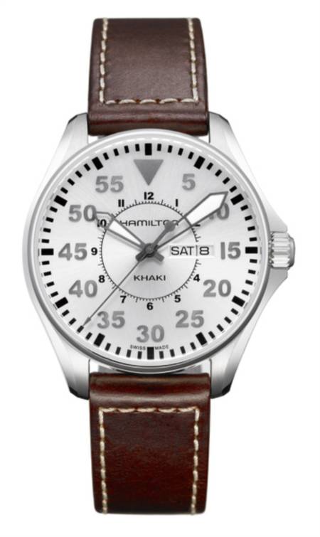 Учитывая то, что для пилотов минута является самой важной единицей отсчета времени, компания Hamilton предусмотрела в своей новой модели Khaki King Pilot циферблат с легко считываемой индикацией именно минут. На нем большие цифры минут и маленькие, центрально расположенные, часовые указатели. Интересно отметить, что частично скелетонизированная часовая стрелка не указывает на цифры часов, а "обрамляет" их.