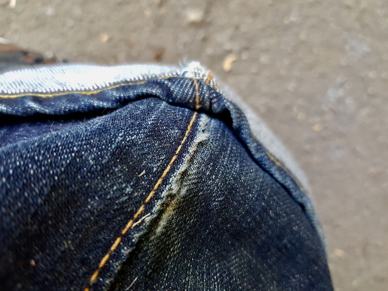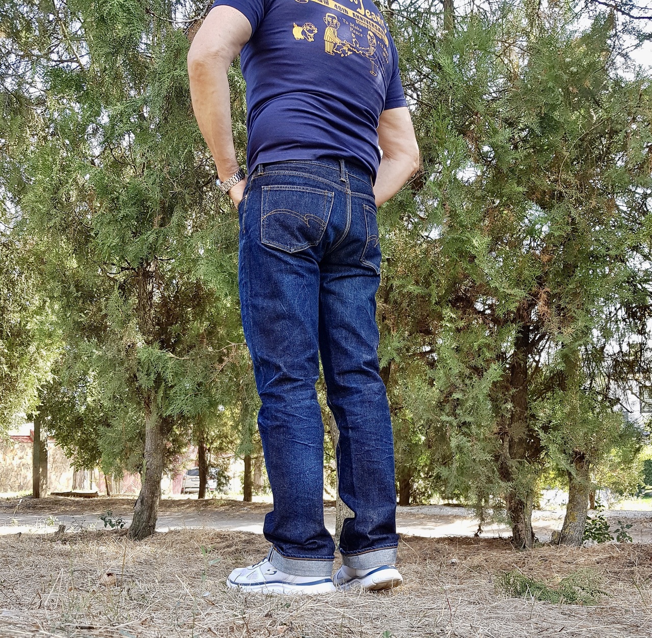 Результаты усадки Momotaro 0601-20oz, 31 размер таковы, что инсим сел на 2 см, с 92 до 90, а пояс в сложенном состоянии с 42.5 до 41 см. Какая-то странная пара мне досталась :) Усаживал 3 раза в максимально горячей воде из крана, но она горячая условно, руку опускать можно, не сварится. Больше старался вымыть крахмал, потому что даже после второго замачивания, проводя рукой по материалу на ладони оставалось как липкое мыло. Итогом доволен, немного свободный крой получился с умеренно широкой штаниной. А деним конечно та еще фанера :)