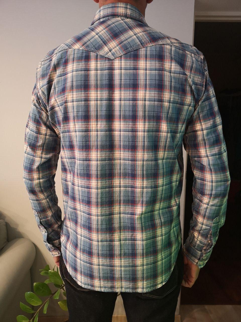 Что же касается Wrangler, то героем сегодняшнего повествования будет куртка от бренда Graph Zero, о котором подробно рассказывалось в одном из предыдущих обзоров. Я не увлекаюсь очень глубоко винтажными вещами, поэтому сравнение со старинной курткой делалось на основе открытых источников. https://www.graphzero.com/images/collection/image5.jpg Вкратце повторю, что данный бренд при всей неизбежности использования старинной американы как базы, стремится к максимальной самобытности, которая выражается прежде всего в весьма необычных типах денима, которые использует Graph Zero. Итак, куртка на основе винтажа Wrangler 40-50-х годов GRAPH ZERO GZ-111MJ-3011 16OZ 2ND TYPE DENIM JACKET(ONE WASHED)(LEFT-WEAVE) http://c2n.me/48qoxsh.jpg Совсем немного истории:) В основе этого выпуска лежит модель Wrangler 111mj (встречается также название 11mj). Как и всем модели джинсовой одежды тех времён, это куртка имела сугубо утилитарное назначение и предназначалась для ковбоев. Плотно сидящая по фигуре короткая куртка с некоторыми инновационными для своего времени деталями, давала своему обладателю как необходимую эргономику, так и определённую эстетику. Оригинальная винтажная куртка встречается сравнительно редко и ценители старины могут приобрести её по ценникам в районе 100 000 JPY и более. http://c2n.me/48qp68w.jpg Вообще стоит сразу сказать, что относительно распространённой классики Levi's type I, II, III , куртка 111mj выглядит более технологичной. Её особенности заключались в том, что особенность кроя плеча позволяли не стеснять движения, при этом избегая мешковатости и некой "квадратности", характерной для курток тех времён. Что касается денима, то времена Wrangler broken twill ещё не настали, здесь использовался сравнительно лёгкий санфоризированный деним 11OZ или 14OZ деним с левосторонним (LHT) плетением. Кстати, куртку Wrangler 111mj носил сам Джон Леннон. По крайней мере фотографии в сети говорят именно об этом. http://c2n.me/48qp4KR.jpg О фасоне и размере Сразу хочу сказать, что это куртка с чужого плеча, предоставленная мне человеком на обзор (за что ему огромная благодарность). Куртка рассчитана на плотную посадку по фигуре. Не имеет эффекта "спущенной вниз линии плеча", характерной, для винтажных левайсовских курток. Эргономика здесь достигается за счёт своеобразного кроя (о чём речь пойдёт ниже). Длина характерна для курток того времени, чётко до пояса. При ношении джинсов с высокой посадкой большей длины не требовалось. На мне куртка сидит следующим образом. Рост 179 см вес 82 кг В застёгнутом виде: http://c2n.me/48m9ysp.jpg Измерения этой куртка в размере 44 таковы. Обращу внимание, что вещь прошла предварительную максимальную фабричную усадку. Size 44 OW Плечи 52 см Грудь 57 см Рукав (от плеча) 63 см Рукав (от подмышки) 55 см Длина (от основания ворота) 63 см Деним Graph Zero не является представителем классического японского репро. Здесь акцентируется внимание на свой специфический деним. Напомню, что деним исторической куртки был 11OZ и 14OZ. Graph Zero сделал эту куртку в дениме с плотностью 16OZ, которая является основной для данного производителя, т.к. позволяет достичь баланса между универсальностью и выразительностью. Вообще деним "собран" весьма плотно и не имеет характерной рыхлости, которую можно увидеть у денима, где при ткачестве ослабляется натяжение нитей. Куртка однозначно будет хорошо защищать от ветра, при этом "деревянной" я бы её не назвал. Фактура здесь сравнительно ровная. С совсем лёгкой неоднородно