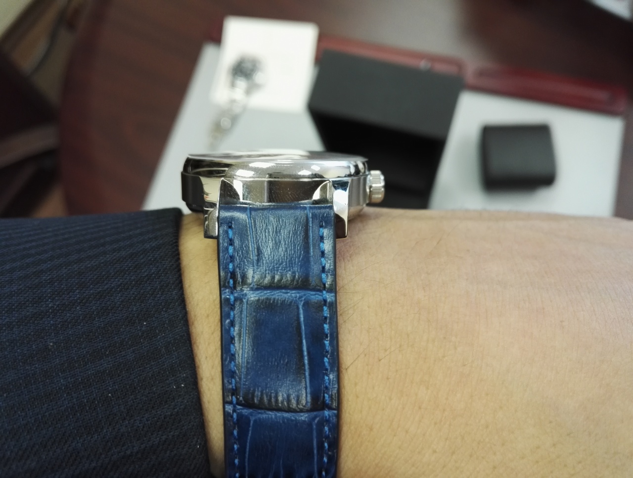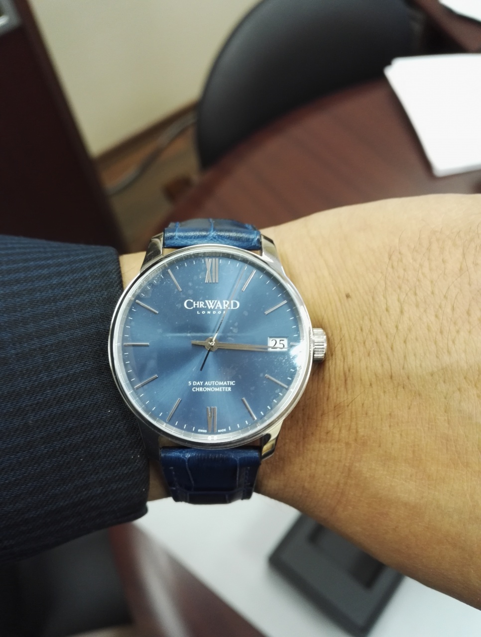 Процесс выбора: Запястье у меня 19 см, ширина 6 см. Хотел с белым цифером 40 мм, но они к сожалению закончились. С белым цифером, но 43 мм брать не рискнул, т.к. белый цифер будет увеличивать визуально часы. Решил остановиться на 40 мм с синим цифером - https://www.christopherward.co.uk/ev...-day-automatic При получении прикинул, можно было и 43 мм брать, спокойно сели бы мне на руку. Чем привлекли часы: Во первых, не буду лукавить, это конечно же цена, на момент покупки часы обошлись мне в 556.25 фунтов стерлингов ~ 42500 рублей. Во вторых, за указанную цену я получил: хронометр, запас хода 120 часов, манфактура и просто красивые часы :) Итак, 26.04.2017 оплатил на сайте, выслали из магазина 04.05.17, прислали трек, который начал отслеживаться на следующий день, а 13.05.17 часы уже ждали меня в отделении связи. Поскольку был в отъезде на выходных, то забрал только утром в понедельник 15.05.17. Пока прикладываю фото распаковки, чуть позже выложу фото в сравнении с Лонжин Конквест и Таг Хоер Формула 1 (особенно вид с боку, т.к. Вард толще, меня устраивает, но кого то может и нет). Вложение 1799386 Вложение 1799387 Вложение 1799388 Вложение 1799389 Вложение 1799393 Вложение 1799394 |