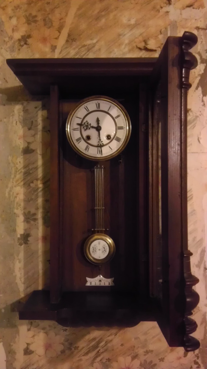 Доброго дня! Небольшой отчет о проделанной работе. Извиняюсь за фото с телефона. Итак, по циферблату. Две втулки из трех, которыми цифер крепится к механизму, были оторваны. Припаял. Стальное основание цифера покрасил из баллончика, пусть железка будет защищена. Цифер разобрал, помыл, собрал. Очень радует состояние эмали на цифере, маятнике и нижнем шильдике. Выпрямил кронштейн, к которому крепится механизм. Теперь все висит параллельно и "попендикулярно". Заторможенный маятник смотрит ровно в центр шкалы и качается относительно центра симметрично. Помаялся с выкачкой, но теперь все очень красиво. Отполировал спицы маятника и все латунные детальки. Верхняя призма к спице крепится на резьбе, от которой были одни воспоминания, призма была закручена на тряпке. Укоротил спицу на 5 мм, нарезал резьбу М2.5, почистил метчиком резьбу в призме, теперь все прочно и надежно. А то раньше маятник пару раз падал у предыдущего хозяина и наделал дыр в нижней крышке (в шпоне. не сквозных). Приступил к очистке деревянных деталей. По-моему, шпон и штапики - дубовые, ноя не спец. Прошу подтвердить или опровергнуть. Спасибо, что имели терпение прочитать! |