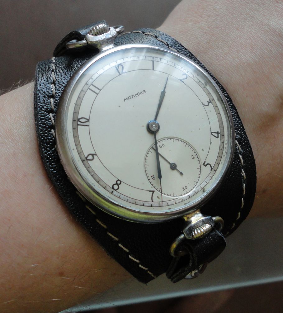 Доброго времени суток всем. Замечательный форум, пару дней здесь всего, а уже столько позитива. Заманивает меня эта "часовая" тема. Подскажите, пожалуйста, какого года ориентировочно могут быть эти часы? Подарила тетка лет пять назад, были без стекла и цепочки, на 20-25 минут в сутки шли вперед. Отдал часовщику, он их отреставрировал. Говорит, примерно 60-х годов могут быть. Ранее здесь часы "с корабликом" уже были, но никто так толком ничего и не ответил, да плюс к этому там было русскими буквами написано "Молния", а у меня латинскими, и мейд ин юэсэса. Помогите разобраться, пожалуйста. цена не интересует - беру их с собой на работу для души, тикают позитивненько так. ммМ:rolleyes:
