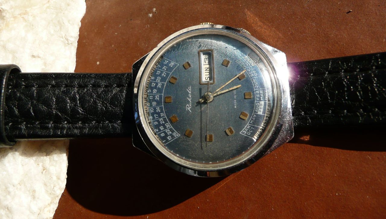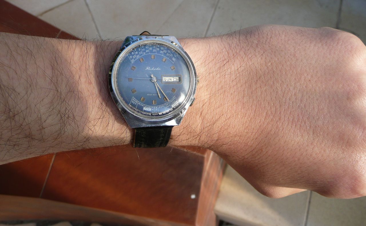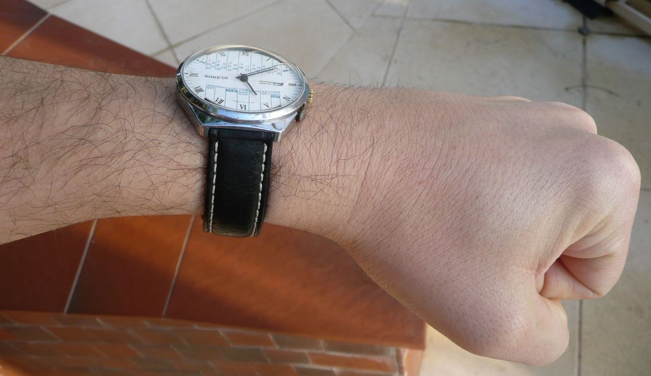В поиске советских часов прикупил на базаре с разницей в неделю 2 Ракеты с вечным календарём. Отремонтировал у мастера, ношу и радуюсь красивым винтажным часам. Даже коллег заинтриговал что это за часики такие:)