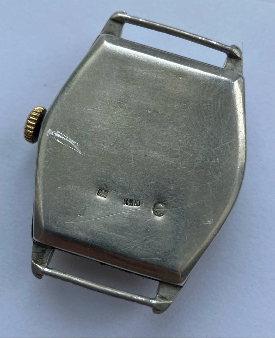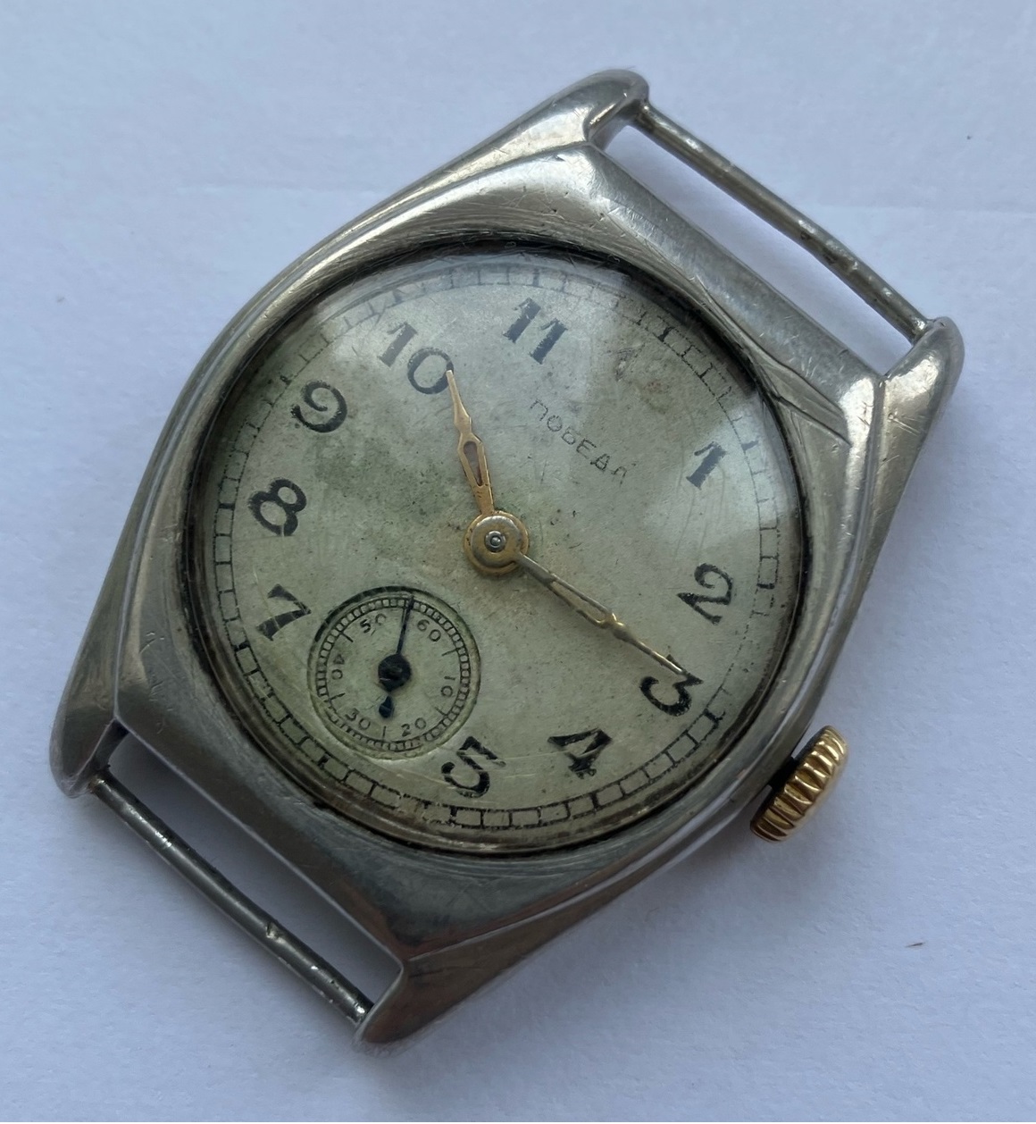 Товарищ показал весьма симпатишный раритетище. Циферблат-стрелки верные (ну прям очень красиво, только миниатюрно весьма) Корпус киевский, механизм котлетный, петродворцовый с противоударным устройством (видимо, заменен в мастерской в свое время сугубо из благих соображений). |