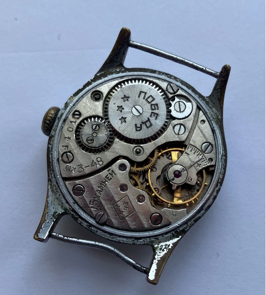 Да, видел эти торги. Нужен приличный циферблат "красная 12", простая победовская головка. Мотор 3-48 с клеймом ХЮ как раз из такого серебряного корпуса, но заводное и барабанное колесо нужно поставить правильные, баланс поставить посимпатичнее.